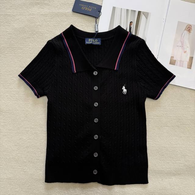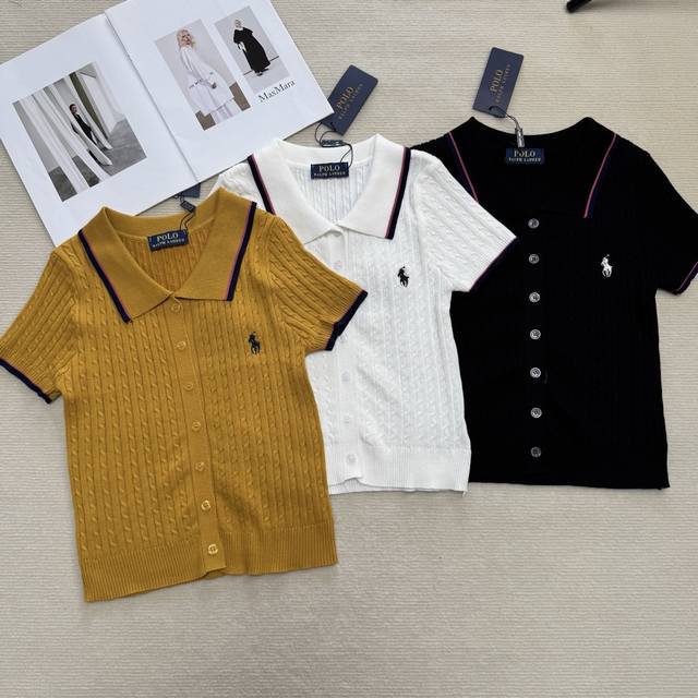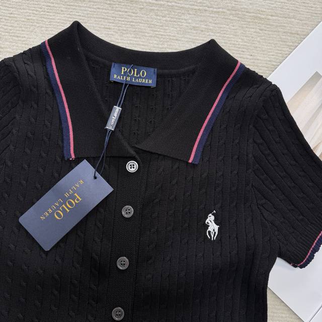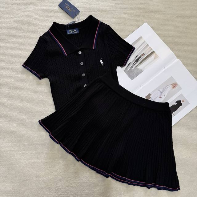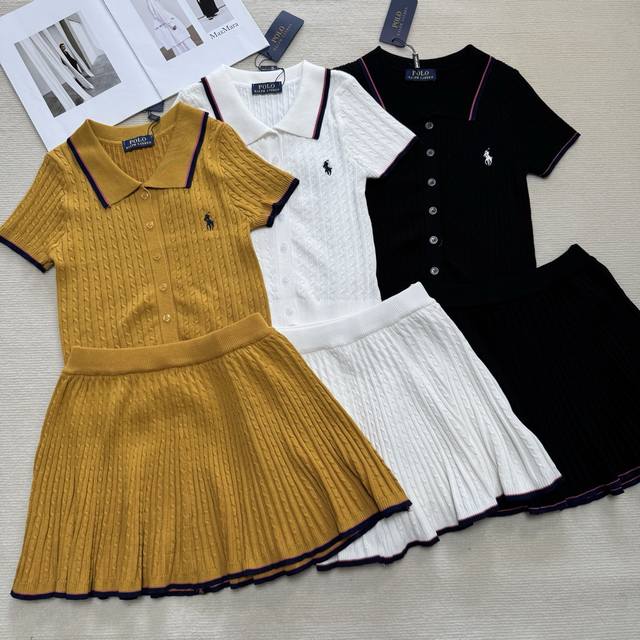 polo collar pony embroidery knitted suit black white yellow one size set
