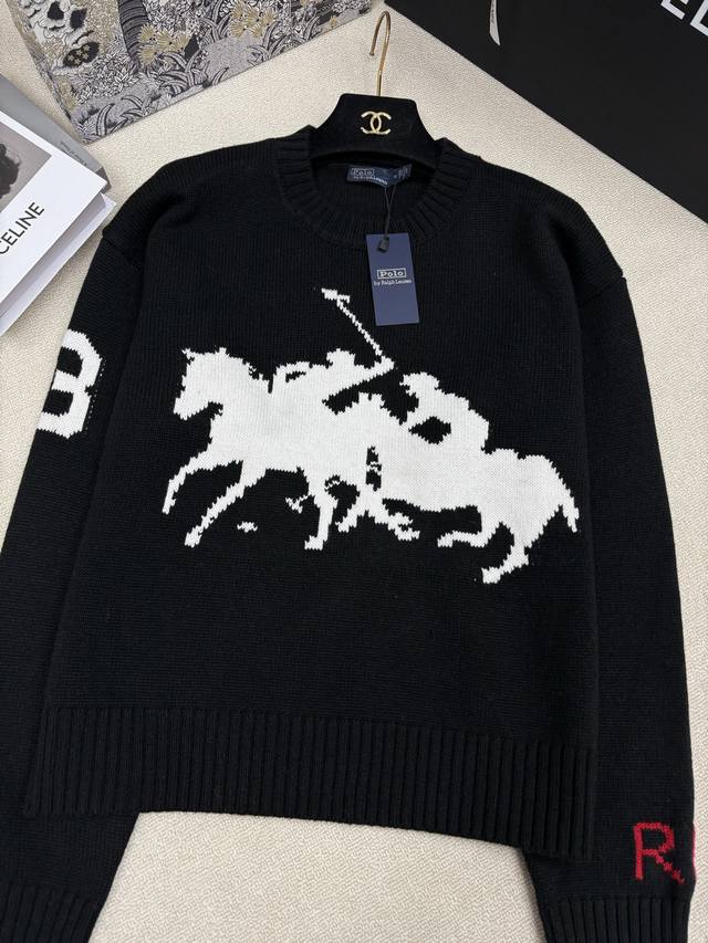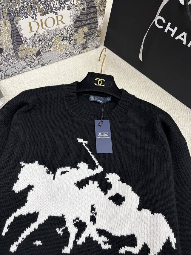Polo Ralph Lauren * 25 Autumn/Winter New Knitted Crew Neck Pullover Classic Brand War Horse Logo Pattern Color Block Jacquard Decoration Sleeves Letter Color Block Jacquard Embellishment Stylish and Exquisite Versatile Sizes Sml Aa DDD