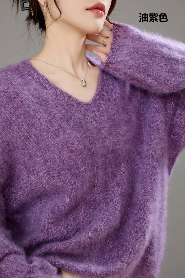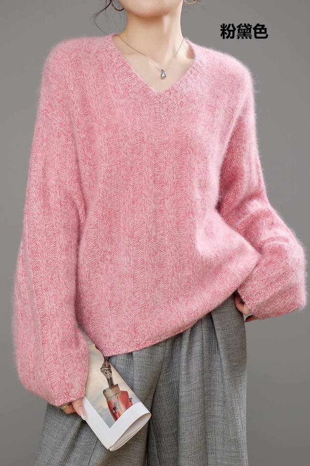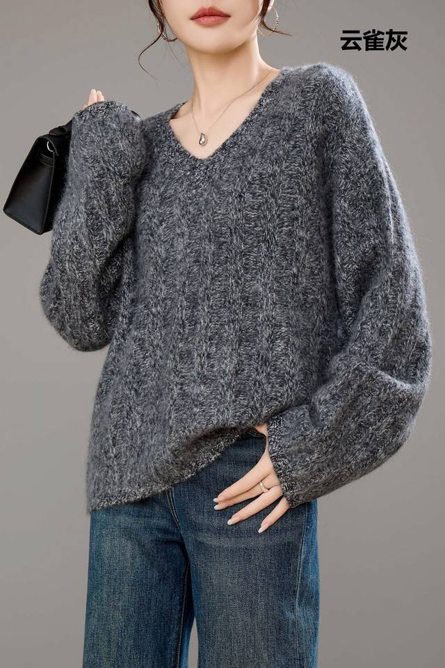 Popular cashmere wool brushed V-neck long sleeve Size: One size