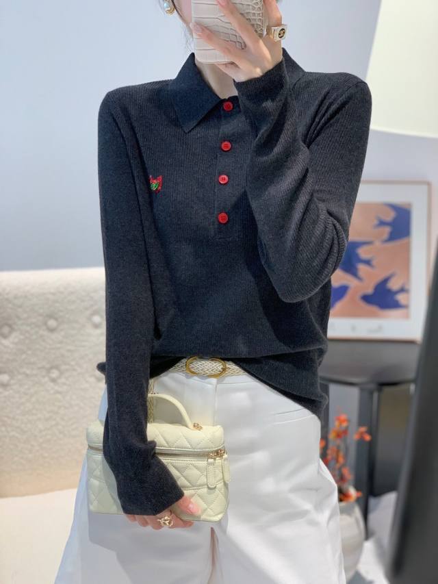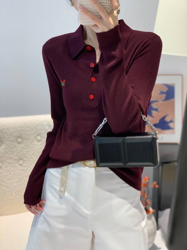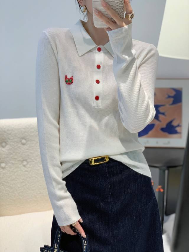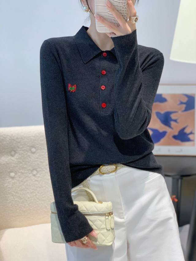 Style No. 3465 Heavy Industry Miumiu's new logo hollow thin contrast knit polo