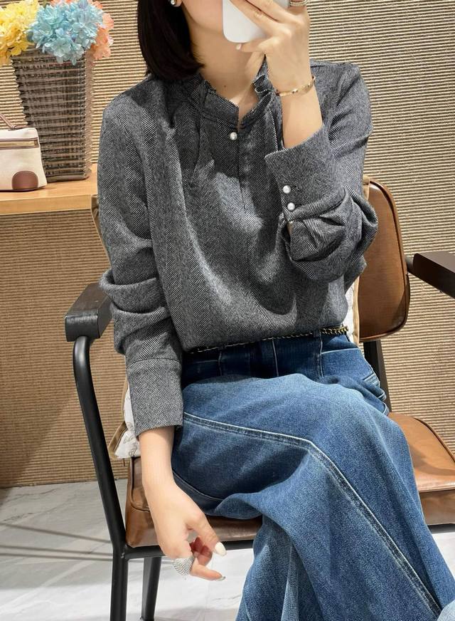 Popular improved style ~ Silk lace collar herringbone wool base top pink, white, gray and caramel color S-Xl