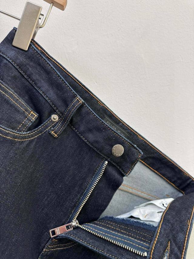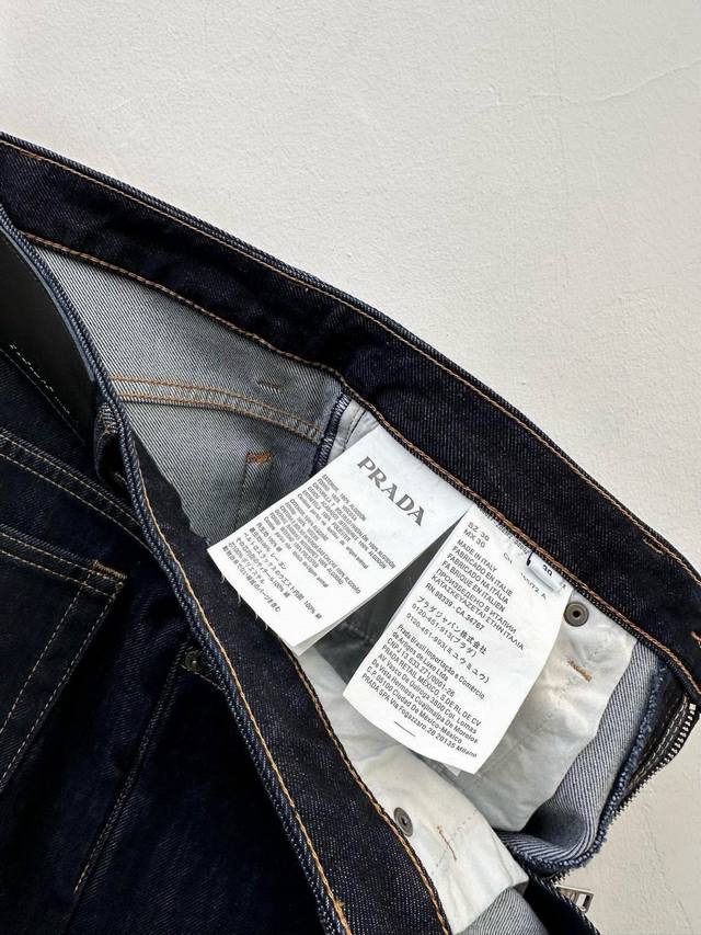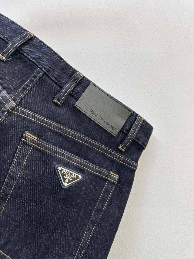 . Classic five-pocket style. Made from stretchy, soft, and comfortable Japanese denim, these jeans feature a great fit! They've been specially treated to create a distressed, three-dimensional look. They feature a button placket, contrasting stitching, and an enameled "Pr" triangle logo on the back pocket for an elegant, recognizable look. Perfect hardware and attention to detail! Sizes: 29-38, no size 35. P.