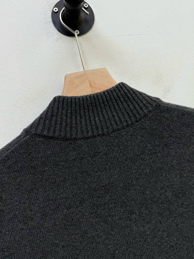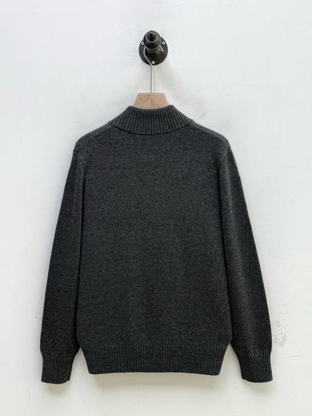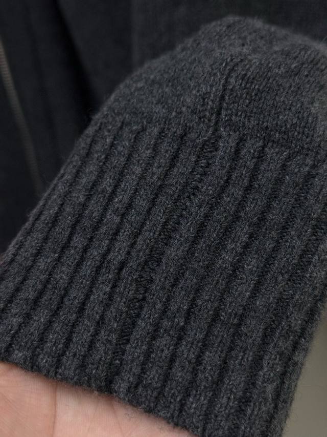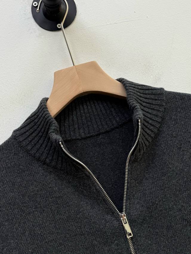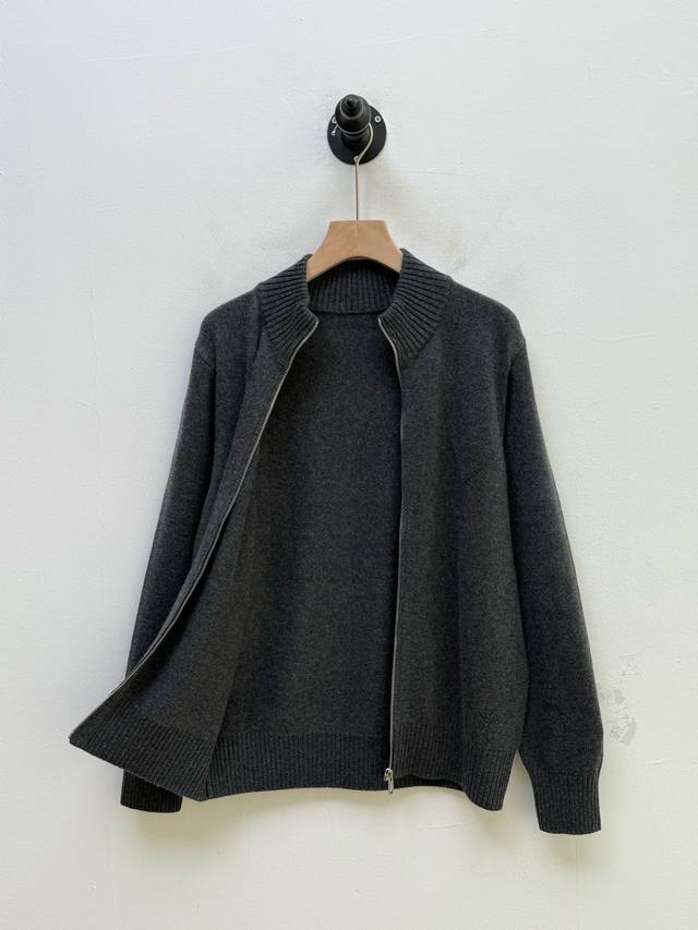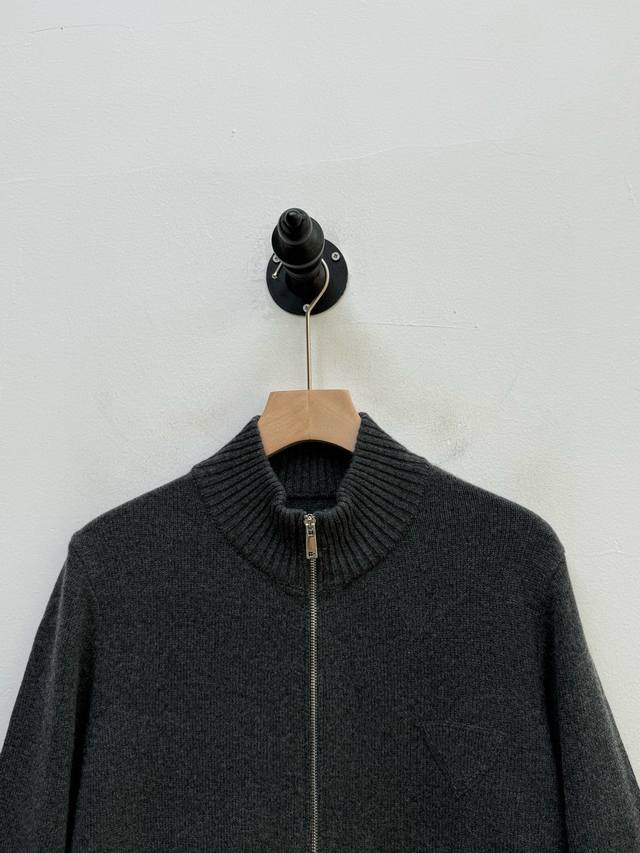 pr Stand Collar Cashmere Cardigan, Factory Direct, Trading Company Order, Autumn/Winter Collection, 100% Cashmere, 9-needle double-ply cashmere knit, dense, delicate, soft, silky, and full of texture. Stand collar with zipper closure, cardigan style, resilient and not flimsy. Triangular logo patch on the chest adds a touch of sophistication. Crafted with care, it effortlessly embodies a relaxed and comfortable fashion sense. Can be worn alone or layered. Available in gray and black. Size: M 2XL. Size L: Shoulder width 43cm, Chest 112cm, Sleeve length 67cm, Length 68cm. Note: Choose according to personal preference. Size L is recommended for individuals 175cm and 75kg. Fine cashmere fabric, dry clean or hand wash only, do not machine wash.