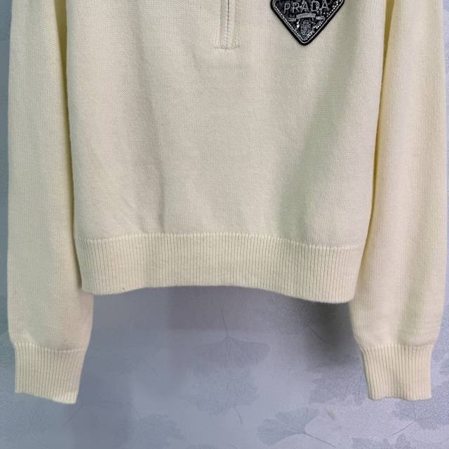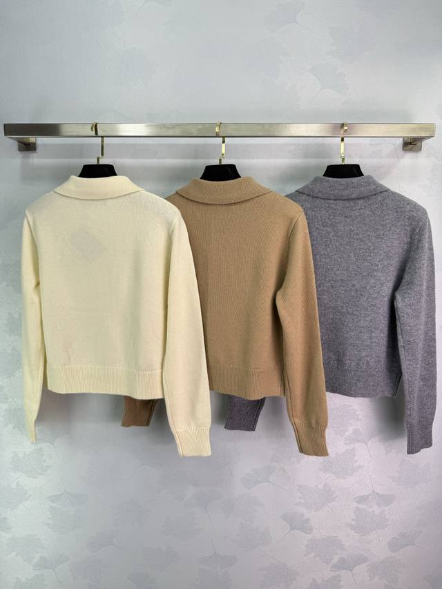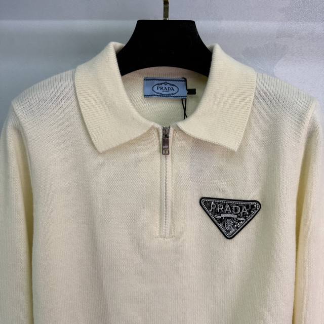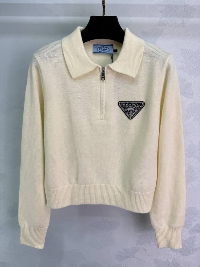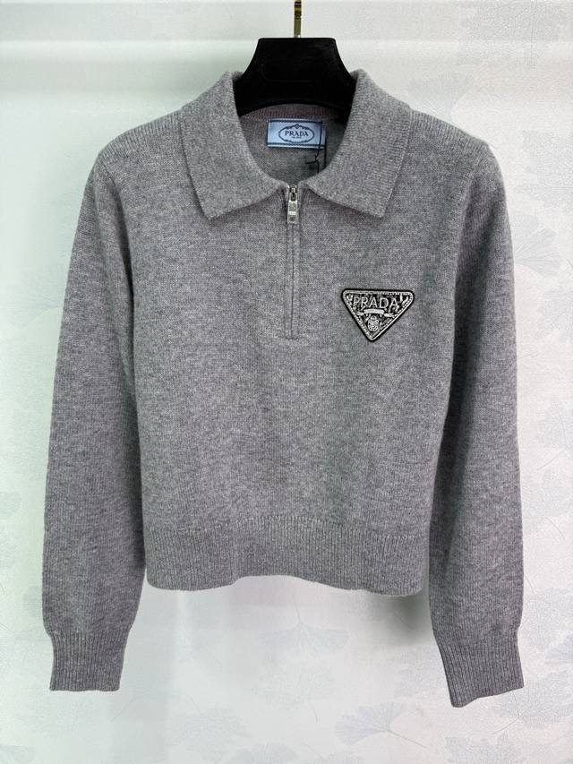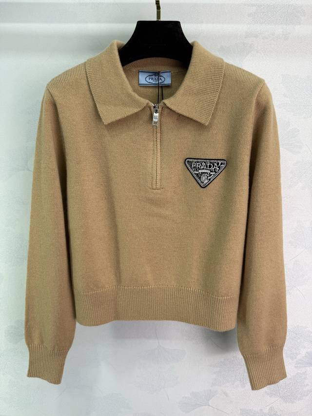 pr*2025 Early Fall new style lapel half-zip top. Custom-woven from imported wool yarn for a premium, comfortable, and soft feel. Knitted with a lapel and long sleeves. Solid color throughout. Triangular logo detail on the chest highlights the brand's signature. Regular fit for a slimming look. Simple and versatile for everyday wear in fall and winter. Stylish and stylish! 3 colors, 3 sizes. Sml T226B.