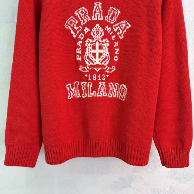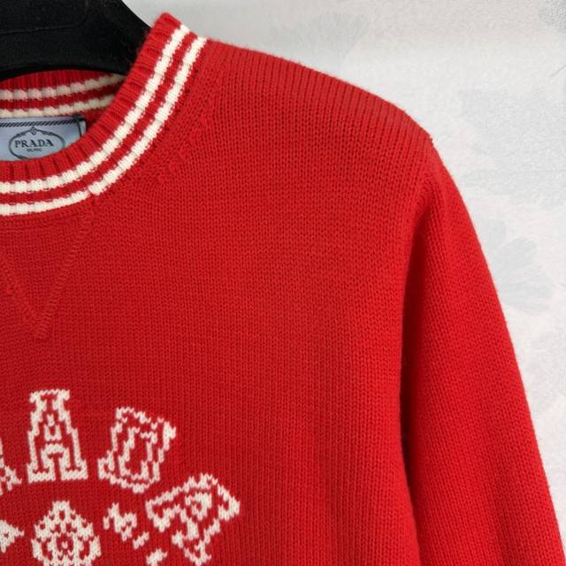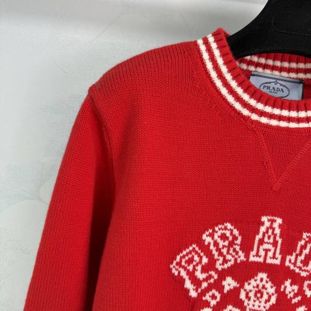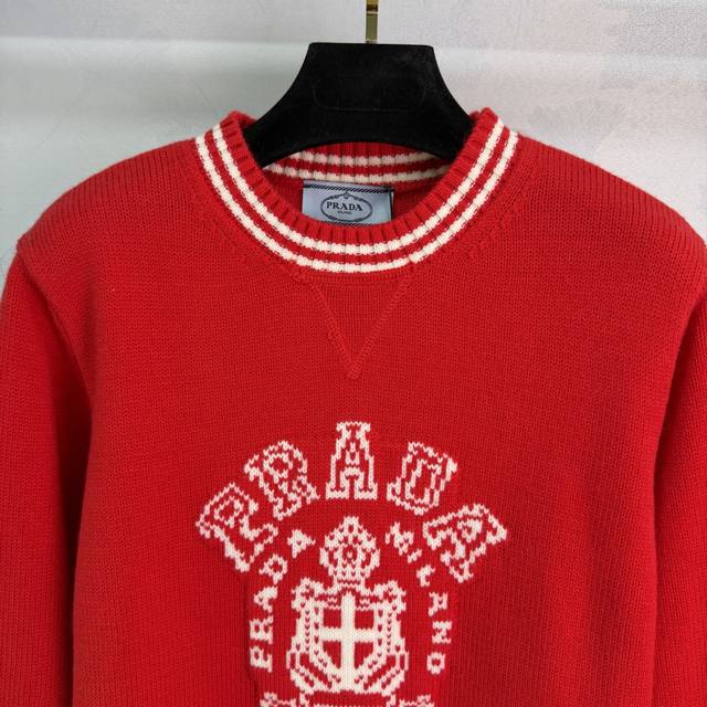 pr*25 Autumn/Winter New Knit Sweater, soft and comfortable, classic logo embroidery on the chest, perfect details, white contrasting trim design, full of retro sporty style, goes well with jeans or casual pants, easily creating a simple and sophisticated look~ A must-have for everyday wear. 1 color, 3 sizes: S, M, L, T226B, DDD