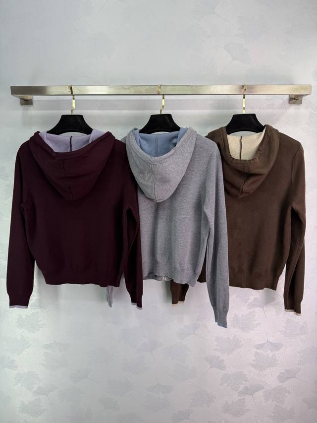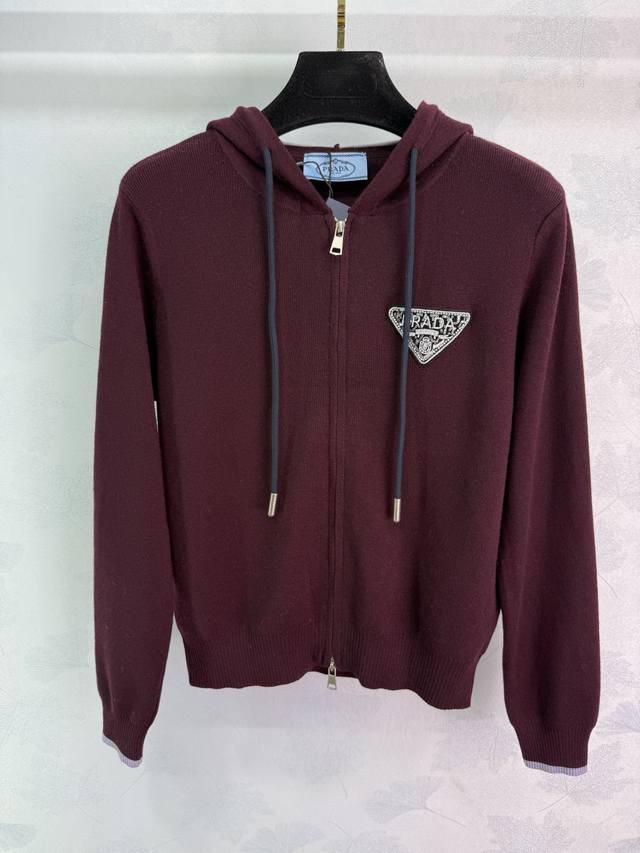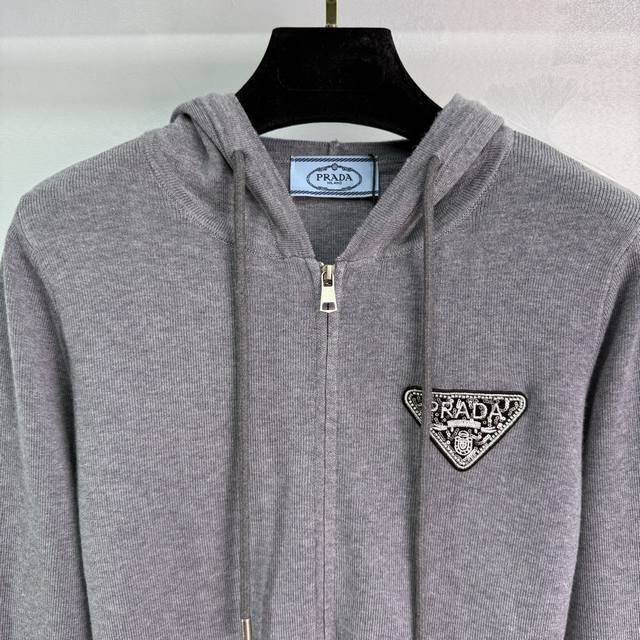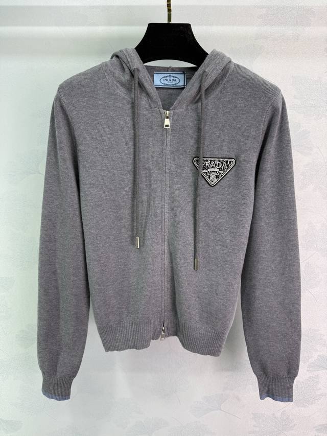 Pr*25 Early Autumn New Hooded Knit Cardigan with Double-Headed Metal Zipper Design and Embroidered Logo on the Chest. Casual and Versatile Style, Suitable for All Ages and Skin Tones. Stylish and Chic! 3 Colors, 3 Sizes: S, M, L, D