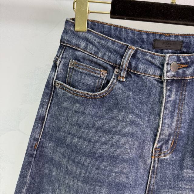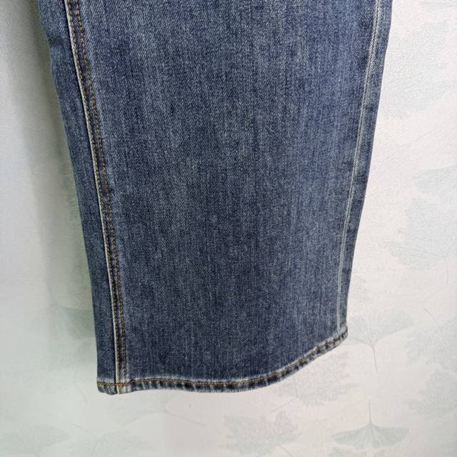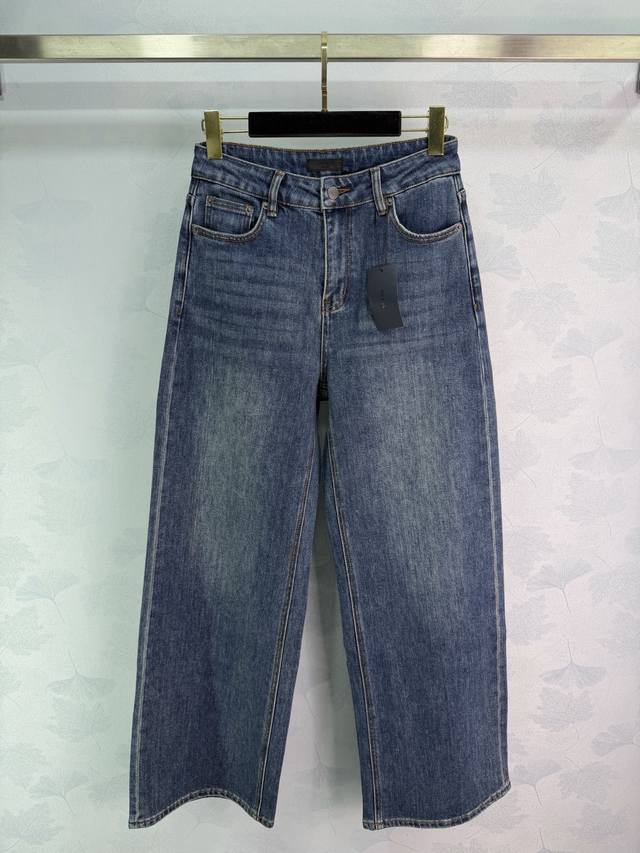 pr*26 Early Spring New Arrival: Back Pocket Logo Jeans. Made with custom imported pure cotton fabric, soft, breathable, and super comfortable to wear. High-waisted straight leg design flatters the figure. The triangular metal logo on the back pocket adds a distinctive touch. Classic blue wash finish gives it a retro feel. Easy to match with any style, from casual everyday wear to streetwear. Stylish and versatile. 1 color, 4 sizes: S, M, L, XL, T226B. DDD