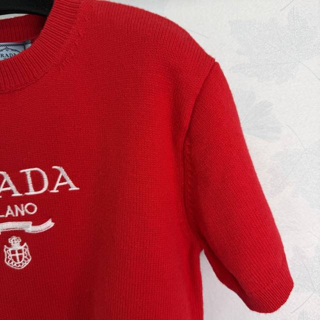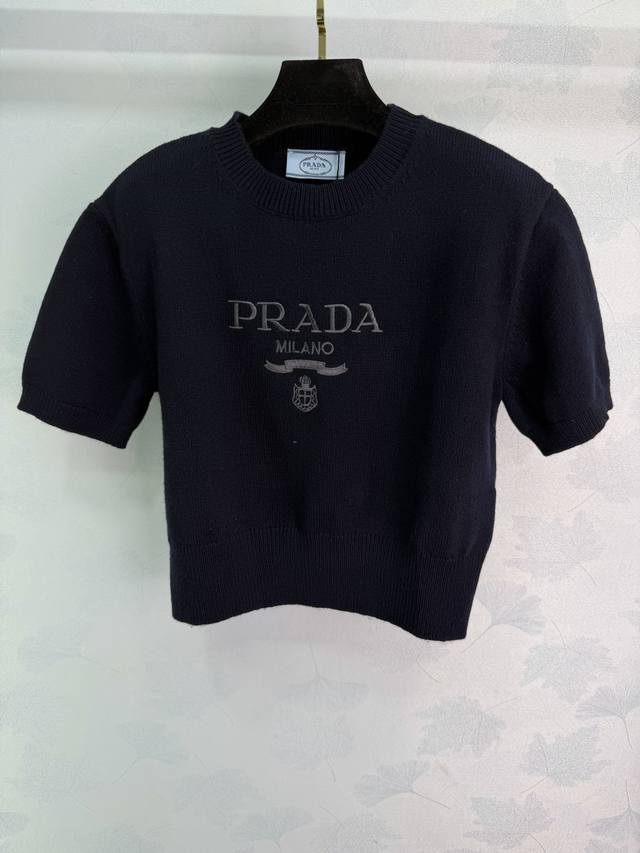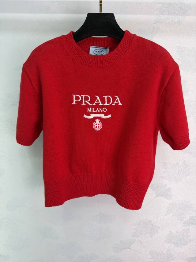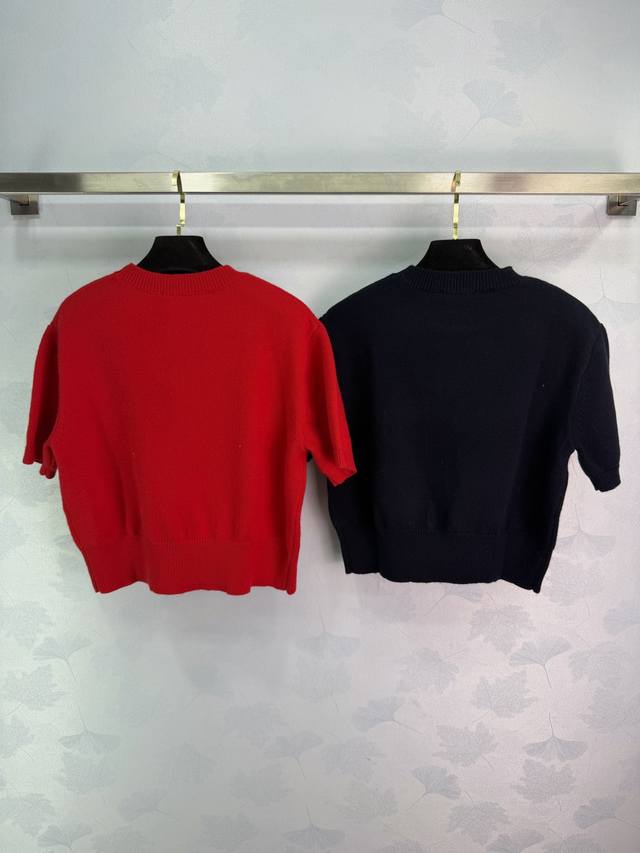 pr*26 Early Spring New Round Neck Knitted Short Sleeve Top with Classic Color-Blocked Brand Logo Design. Simple yet High-End. Youthful and Flattering Color Scheme. Stylish and Versatile. Available in 3 Sizes: S, M, L. T226B. DDD