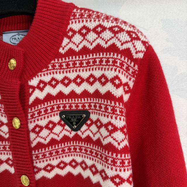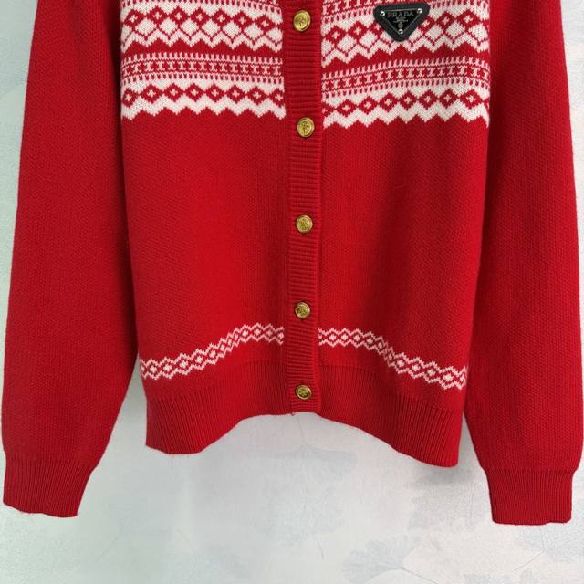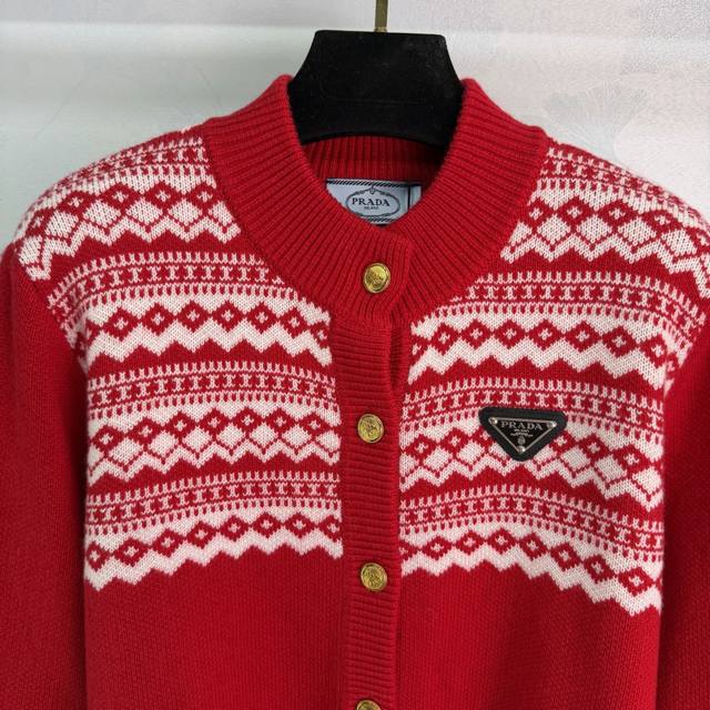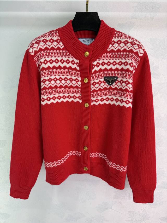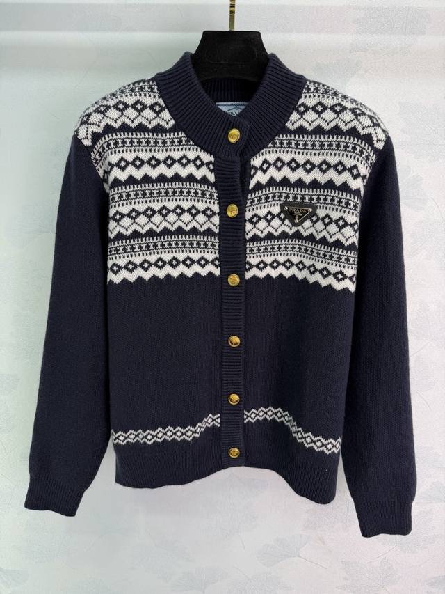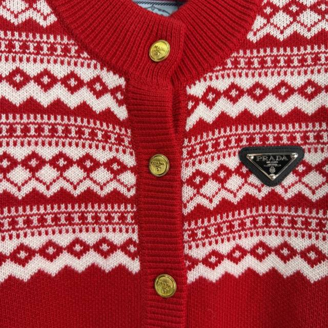 prad* 2025 Autumn/Winter New Fair Isle Collection Heavy-Duty Crochet Crew Neck Long-Sleeve Cardigan! Made of custom wool yarn knit material, high-quality texture, comfortable and soft. Ribbed edges on the neckline and cuffs echo the hem. The overall body features a diamond-patterned Fair Isle Nordic-style crochet pattern, creating an artistic and youthful look. The triangular logo decoration on the chest highlights the brand's style. A simple and versatile everyday piece for autumn and winter! 2 colors, 3 sizes: S, M, L, T226B. DDD