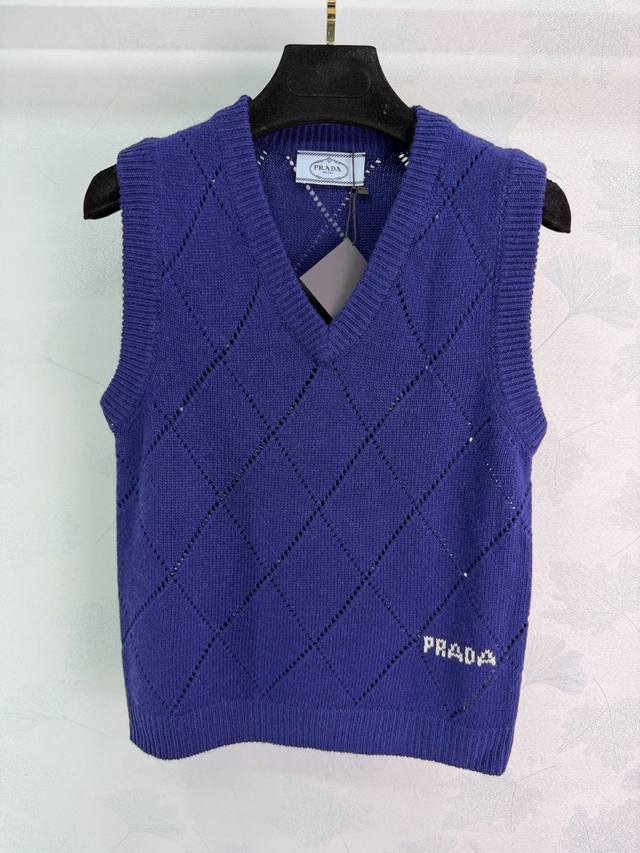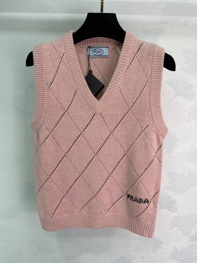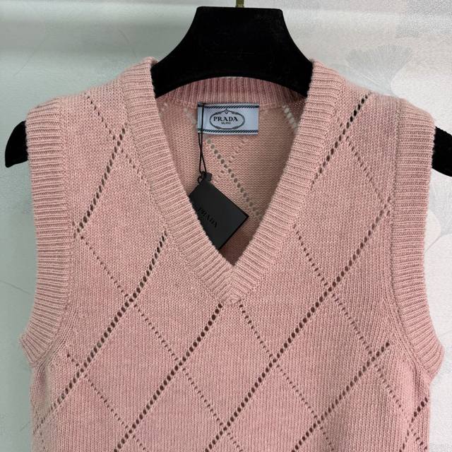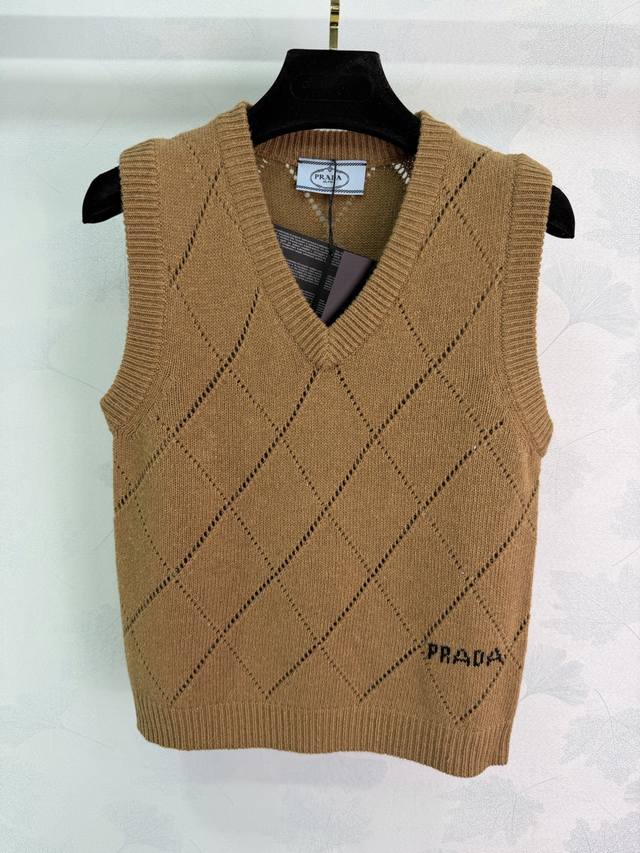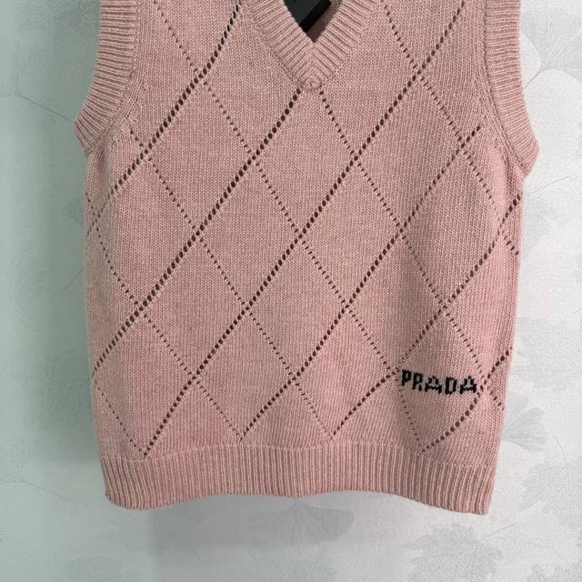 prad* 2025 Autumn/Winter New V-Neck Diamond Pattern Knit Vest! Made with custom wool yarn, this delicate, soft, comfortable, and breathable V-neck knit vest features an all-over diamond pattern for a slimming effect. The well-designed hem with letter jacquard and a micro-label adds a touch of brand style, making it a must-have for everyday wear, commuting, and dates! 3 colors, 3 sizes: S, M, L, T226B. DDD