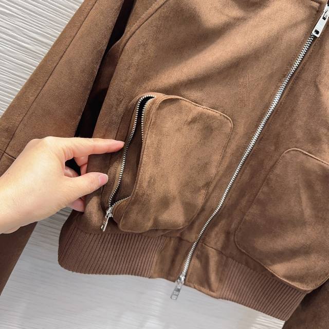 prad* 2025Fw New Suede Jacket - Super Stylish, High-End Custom Triangle Logo with Exclusive Design! Absolutely gorgeous cut, effortlessly chic! Not only is the color beautiful, but the quality is also superb! Exquisite and fashionable. Sizes S, M, L. Back Length 45cm, Sleeve Length 72.5cm, Bust 107cm. DDD