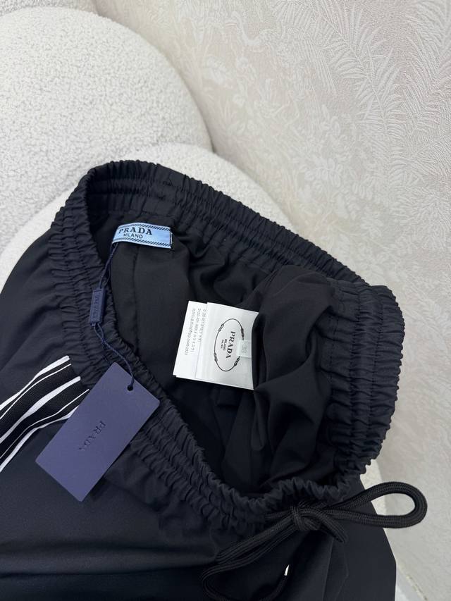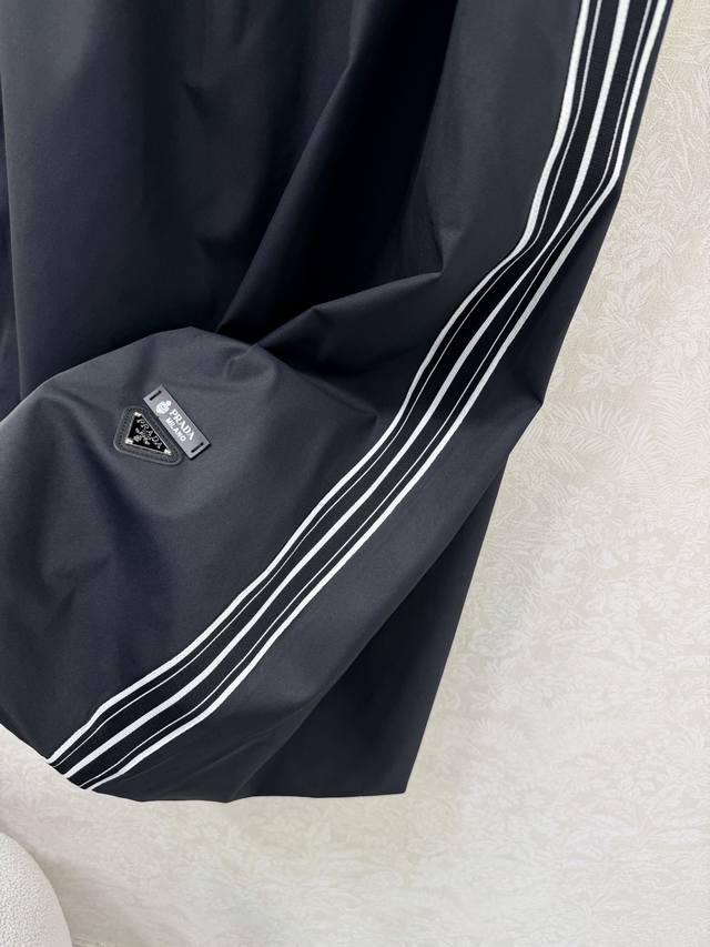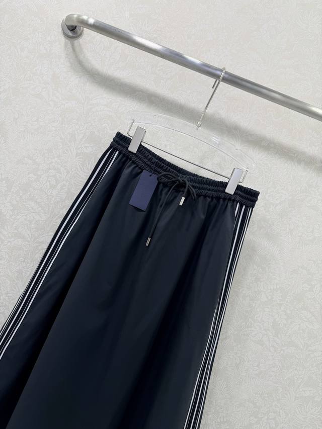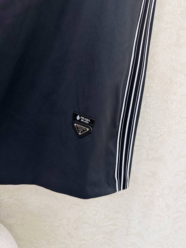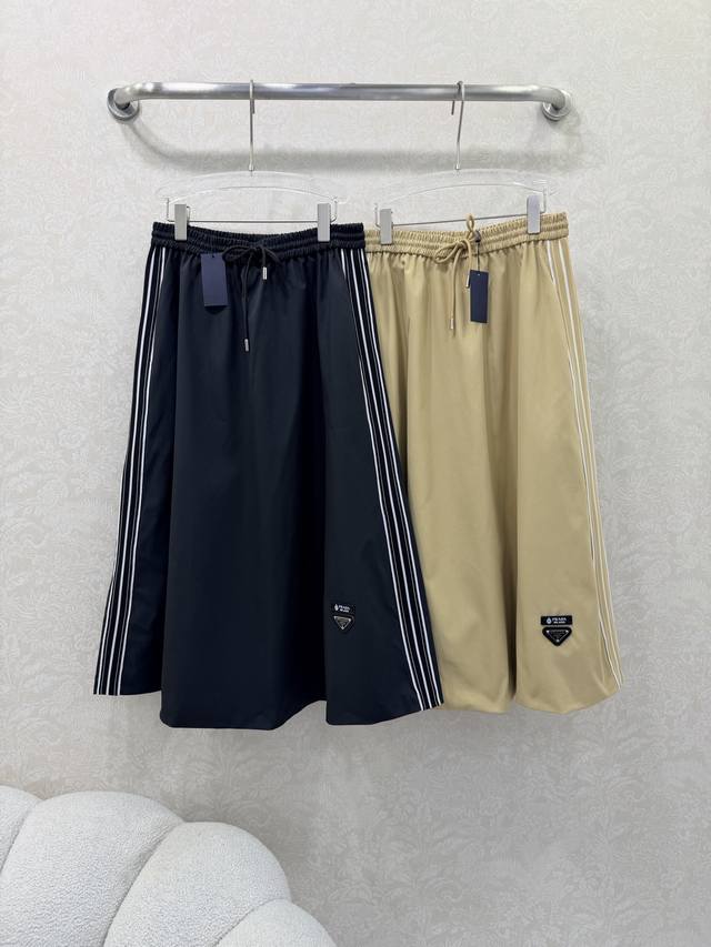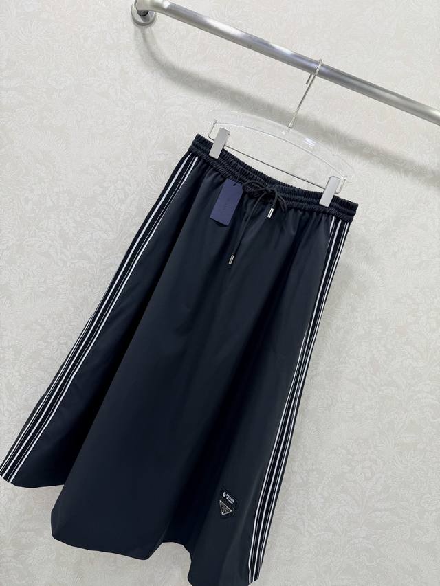 prad* 2026 New Style Drawstring Waist Skirt. Custom leather and triangular labels on the hem and striped webbing on both sides create a visually appealing, understated yet luxurious look. The three-dimensional cut and streamlined design accentuate the waist, exuding a noble and elegant yet gentle and intellectual charm. Instantly achieve a sweet, cool, and rebellious girlish style. Suitable for both casual and work occasions. 2 colors, 3 sizes. Smlb. DDD