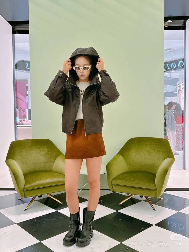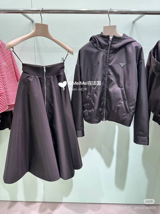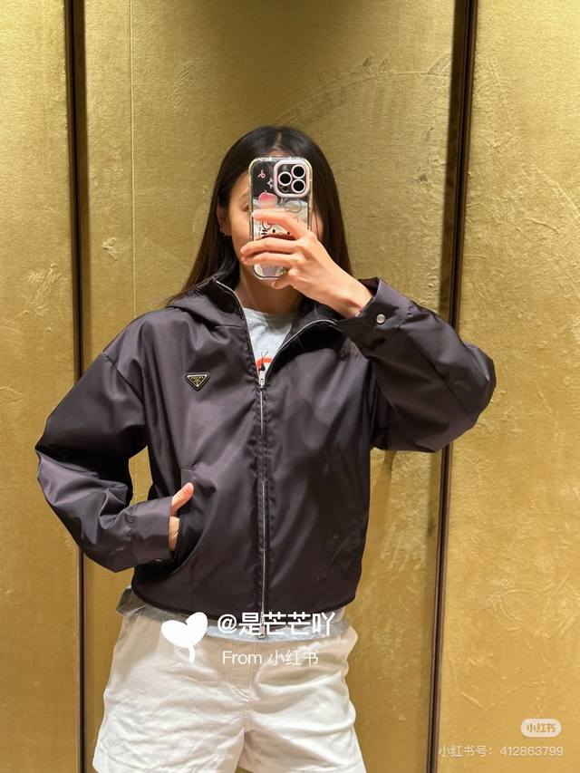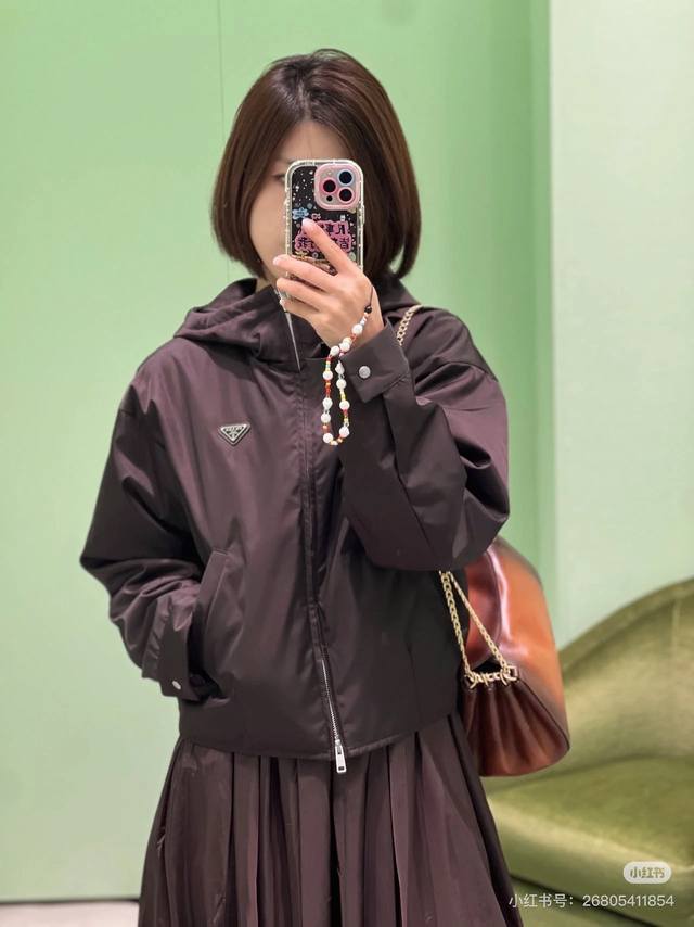 prad* Autumn/Winter New P-brand Custom Classic Metal Triangle Logo Double Zipper Placket Short Long Sleeve Hooded Cotton Jacket! Dark Brown, Size M: Shoulder Width 47cm, Chest 110cm, Sleeve Length 53cm, Jacket Length 52cm. (DDD)