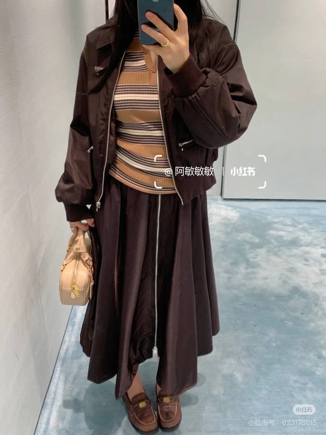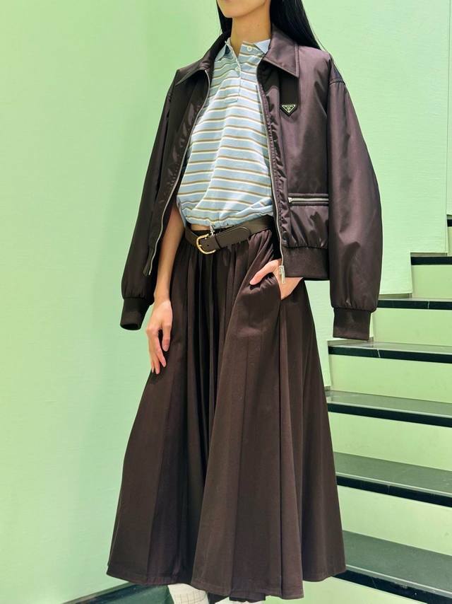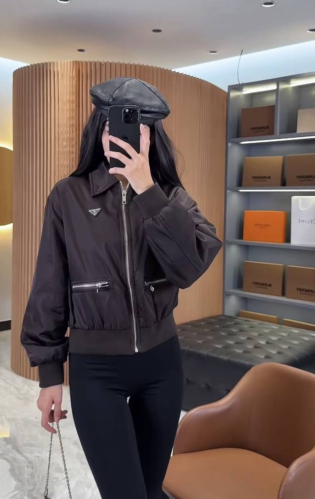 prad* Autumn/Winter New P-brand Custom Classic Metal Triangle Logo Zipper Pocket Ribbed Cuffs Patchwork Short Long Sleeve Zipper Placket Lapel Thickened Jacket Cotton Coat! Dark Brown, Size M: Shoulder Width 48cm, Chest 120cm, Sleeve Length 56cm, Length 54cm. Coat DDD