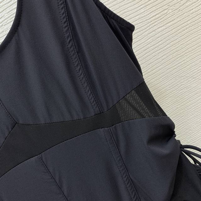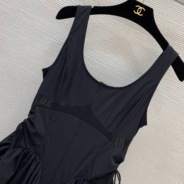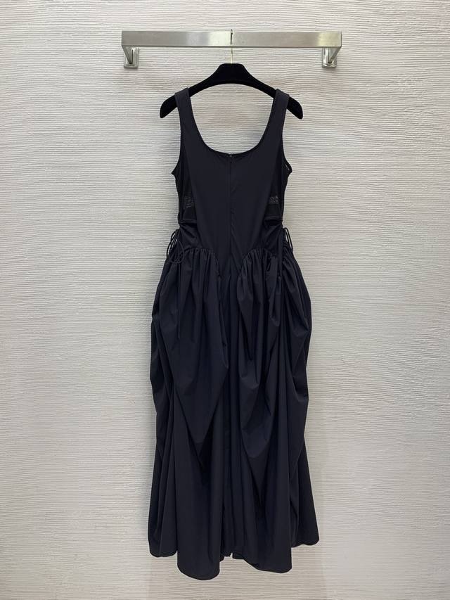 prad* New high-end custom-made camisole dress with hemming, see-through mesh front, drawstrings on both sides, and a slimming waist. Black, size M: bust 84, waist 68, skirt length 133