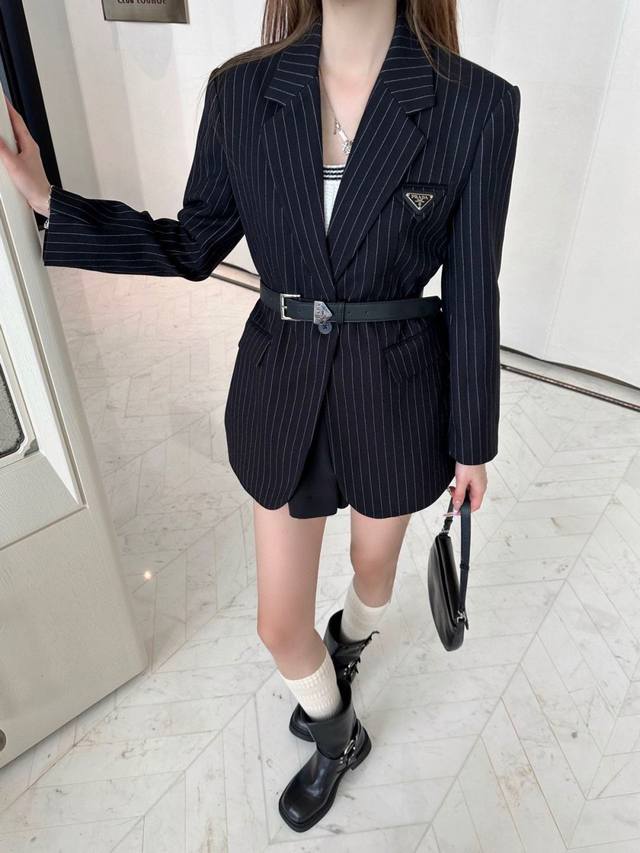 / prad* Striped custom fabric pocket triangle label decoration fine workmanship hi