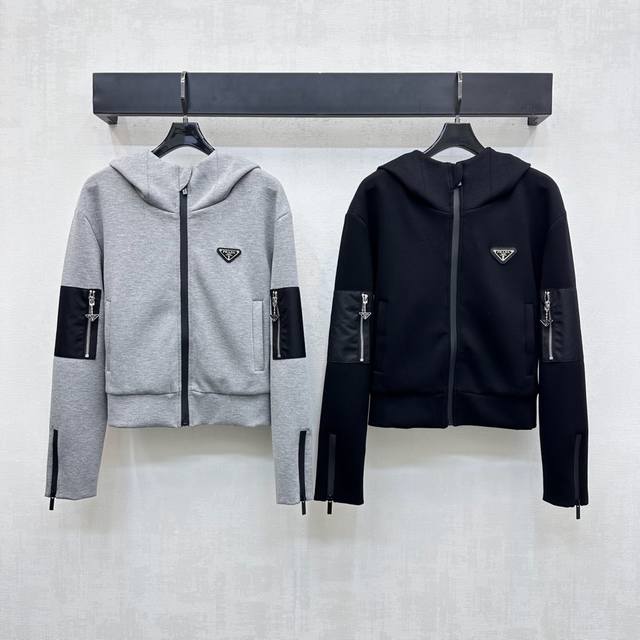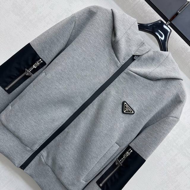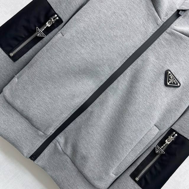prad*2025 New Arrival Hooded Jacket with Spliced Pockets Custom Made Yb Imported