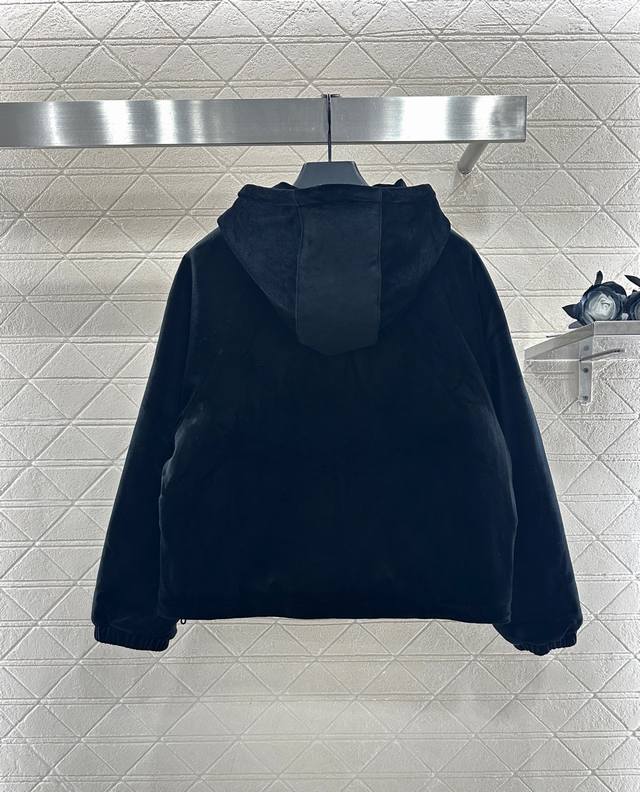 prad*2025 New Arrival DDD Hooded Velvet Cotton Jacket DDD Custom-made imported velvet material, textured and lustrous, comfortable and warm. Hooded zip-up jacket style, iconic letter chain buckle and triangular metal logo on the chest, showcasing brand style. The inner lining is padded to ensure warmth in autumn and winter. The hooded, loose fit is flattering and slimming, stylish and trendy. Custom-made fabrics and accessories, look for the high-quality version. DDD