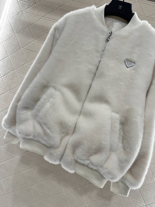 prad*2025 New Arrival Ddd Reversible Eco-friendly Fur Down Jacket Ddd Custom Yb Imported eco-friendly fur windproof and waterproof nylon material, down-filled lining, reversible design for easy style switching, luxurious fur and understated nylon, lightweight and warm, baseball-style ribbed zipper opening design for enhanced warmth, triangular metal logo on chest for individuality and style, versatile black and white for autumn and winter, easy to match with any outfit, the silhouette is chic and stylish. Customized fabric and accessories, look for the high-quality version, 2 colors: black and white. DDD