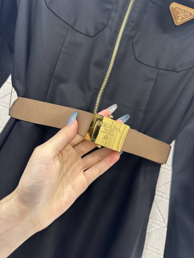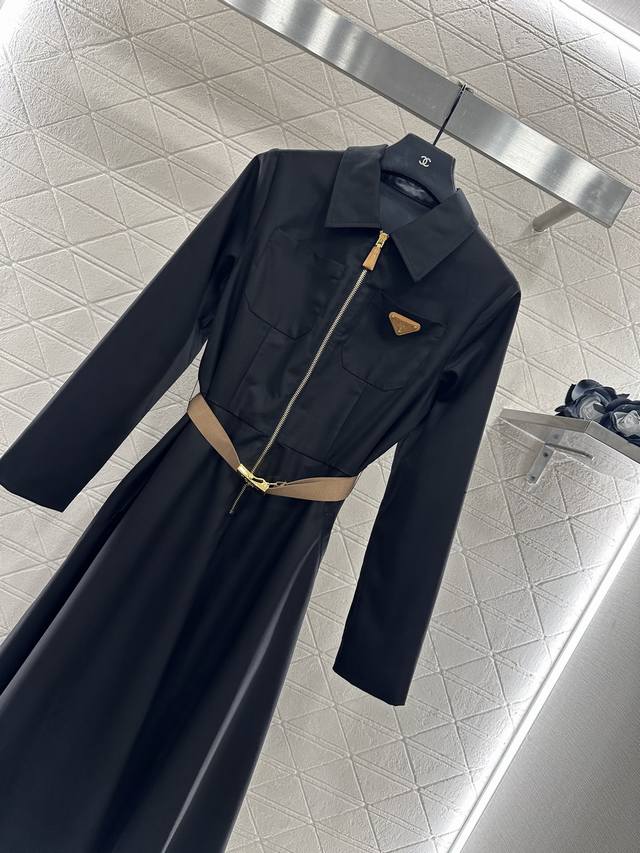 prad*2025 New Arrivals Lapel Belted Dress Custom Yb imported rayon, breathable a