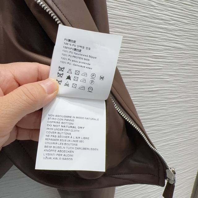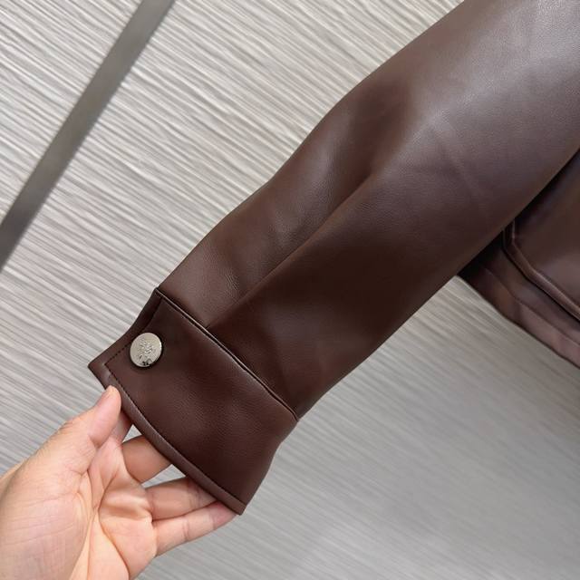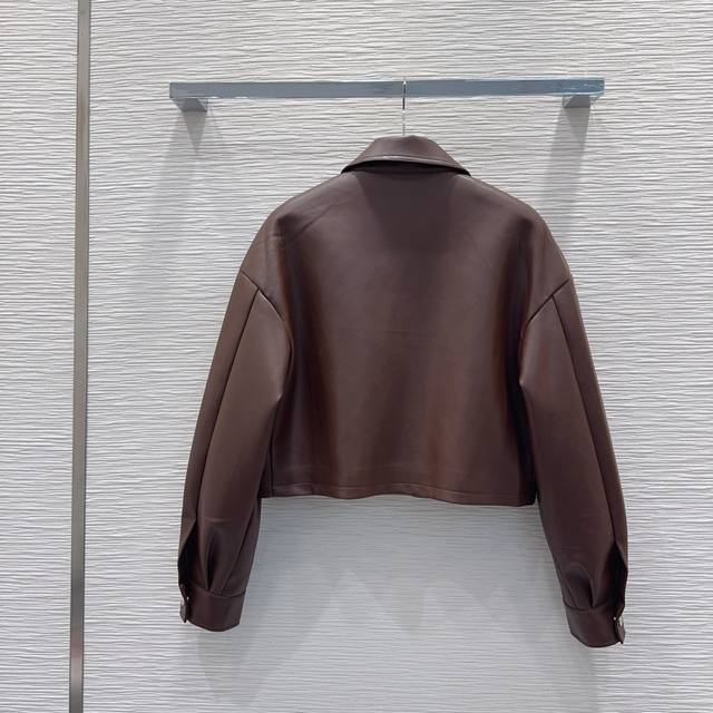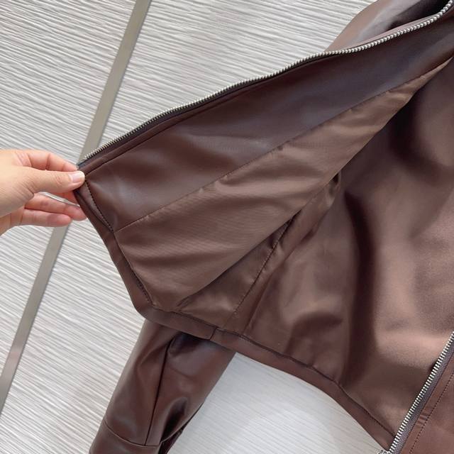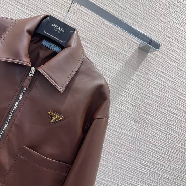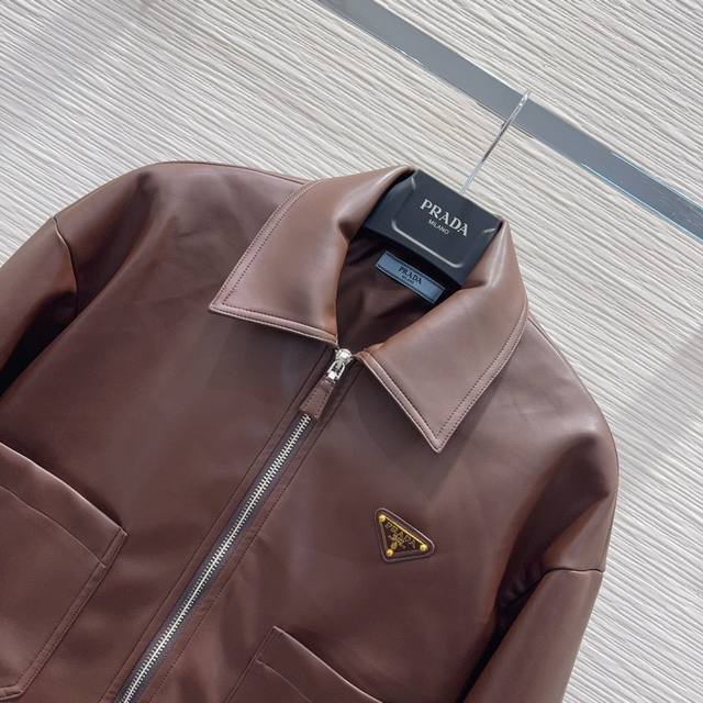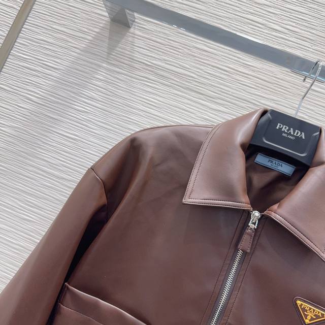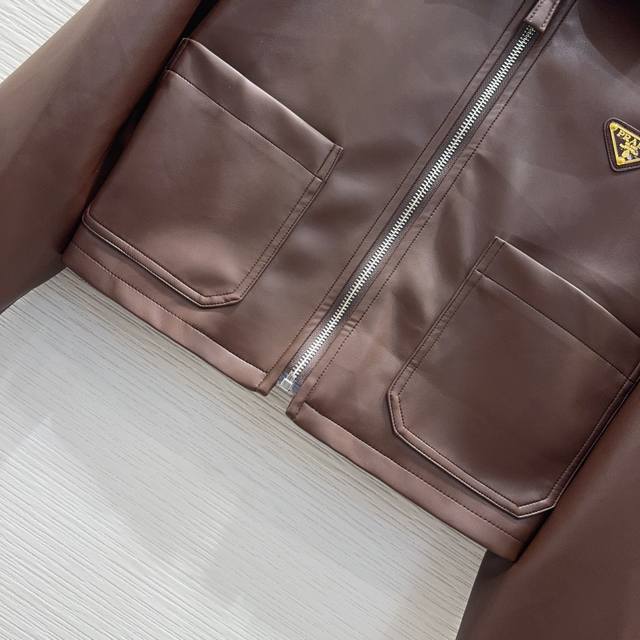 prad*2025Fw new 100% PU protein leather stylish and handsome high edition product! Very unique taste and personality classic style design simple and elegant unique craftsmanship adds a touch of refinement and delicate Sml S back length 44.5 shoulder width 55 chest 96 sleeve length 51