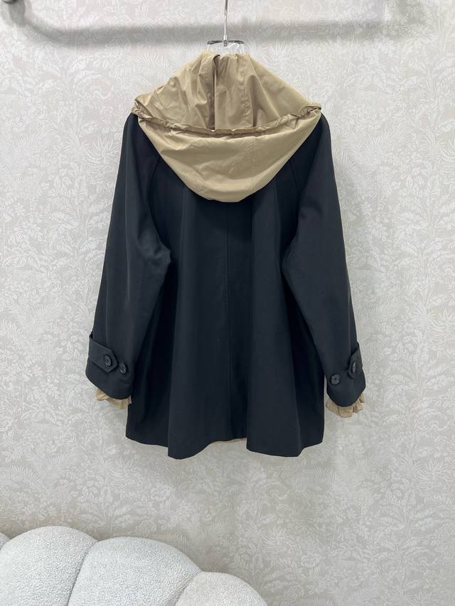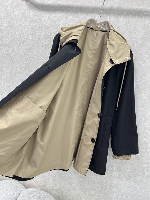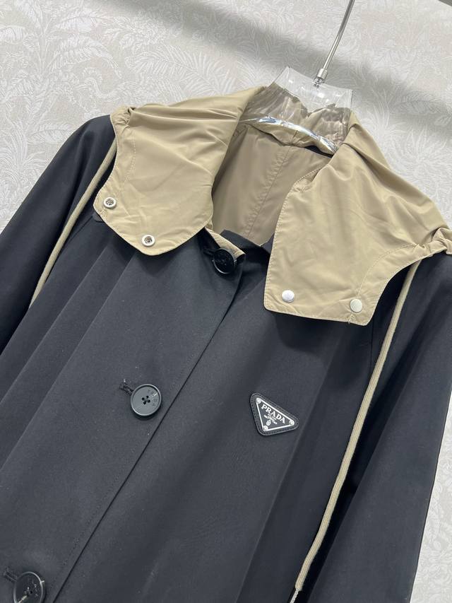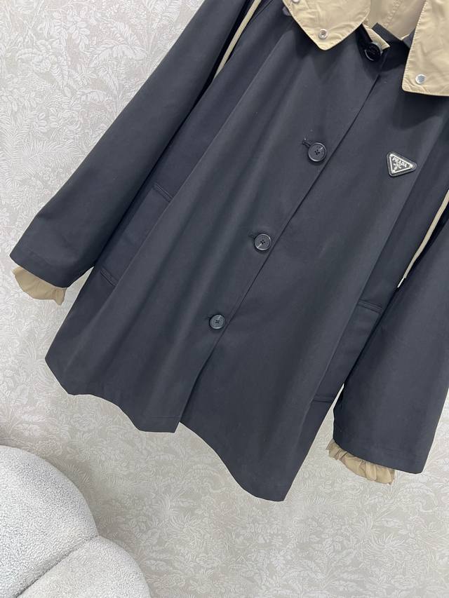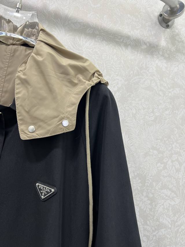 prad*25 A new, stylish trench coat with a detachable hood and custom logo hardware. It's reversible and wearable. The coat features khaki memory fiber stitching! Unique cuffs and a loose fit for both men and women. It's a stunning piece! A retro-inspired look for those who want a youthful, youthful look! The triangle logo creates a low-key, luxurious look! Made from imported pure cotton, it's incredibly textured. Whether sweet or savory, it's versatile and suitable for everyone! Quality craftsmanship is reflected in the details. Available in three sizes, Smlb.