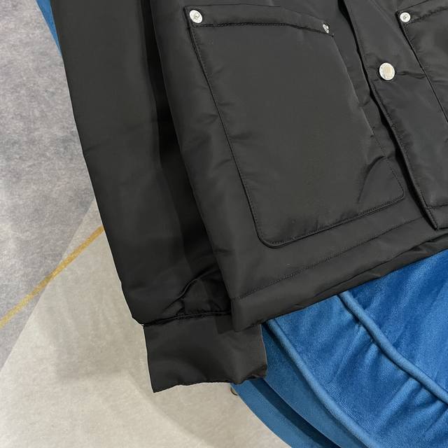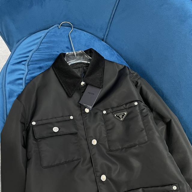 prada autumn and winter new cotton button style quilted jacket, recycled nylon material windproof and waterproof fabric versatile warmth and high-end, super cool and handsome 1 color size Smlxl