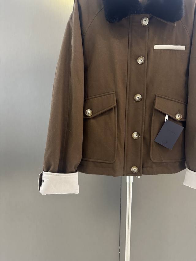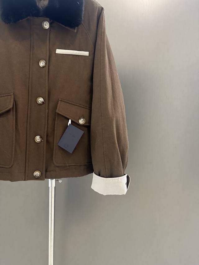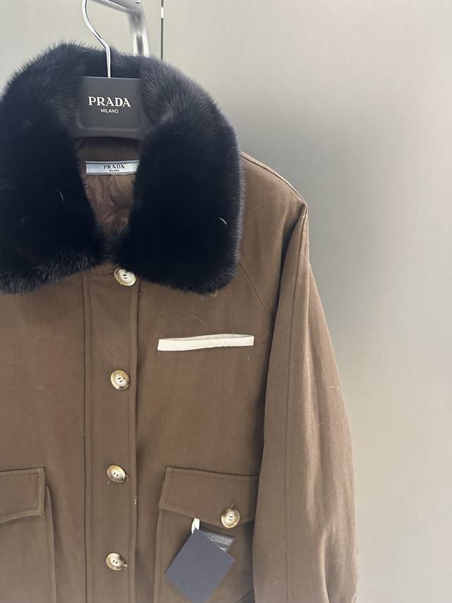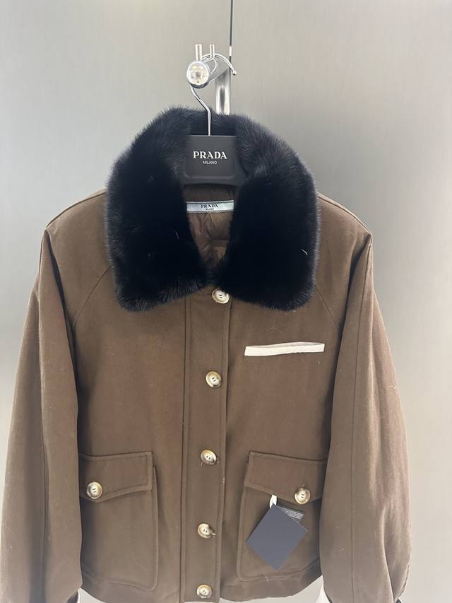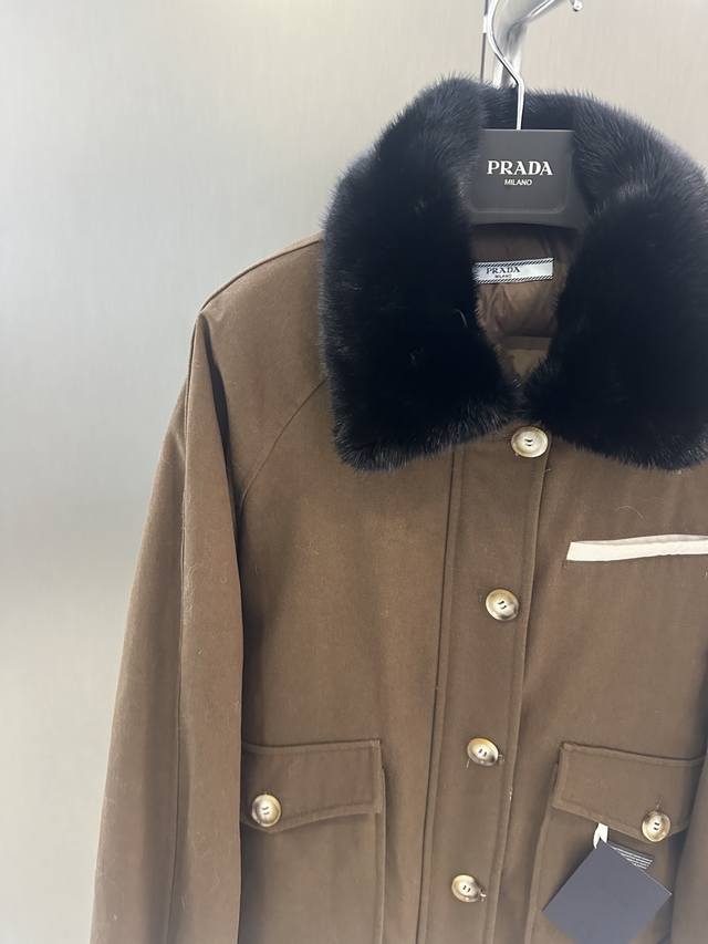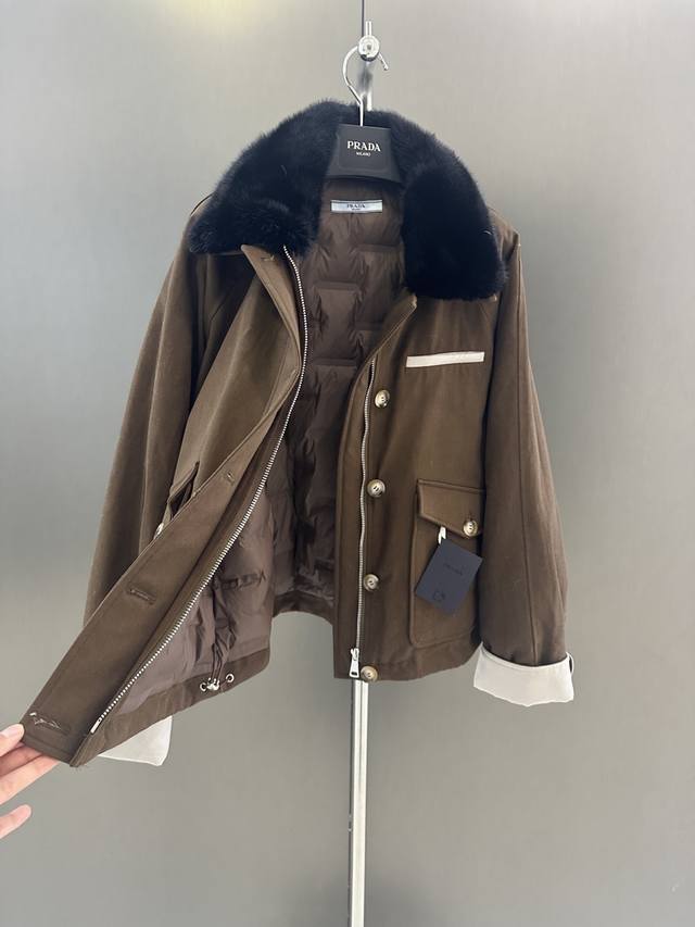Prada Autumn/Winter New High-Quality Goose Down Jacket DDD Featuring an imported velvet mink fur collar, simple yet luxurious design. 90% white goose down filling for warmth and comfort. Sizes S, M, L. Length 60cm, Chest 120cm, Size M DDD