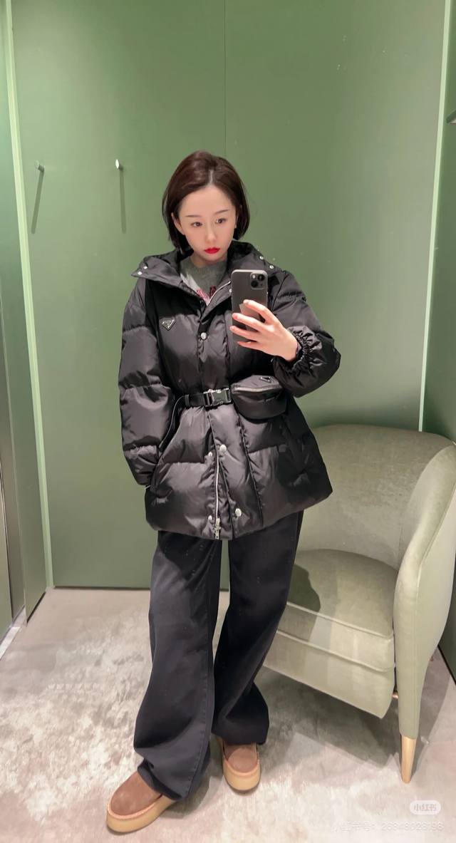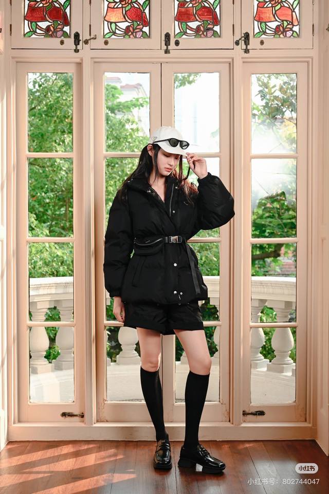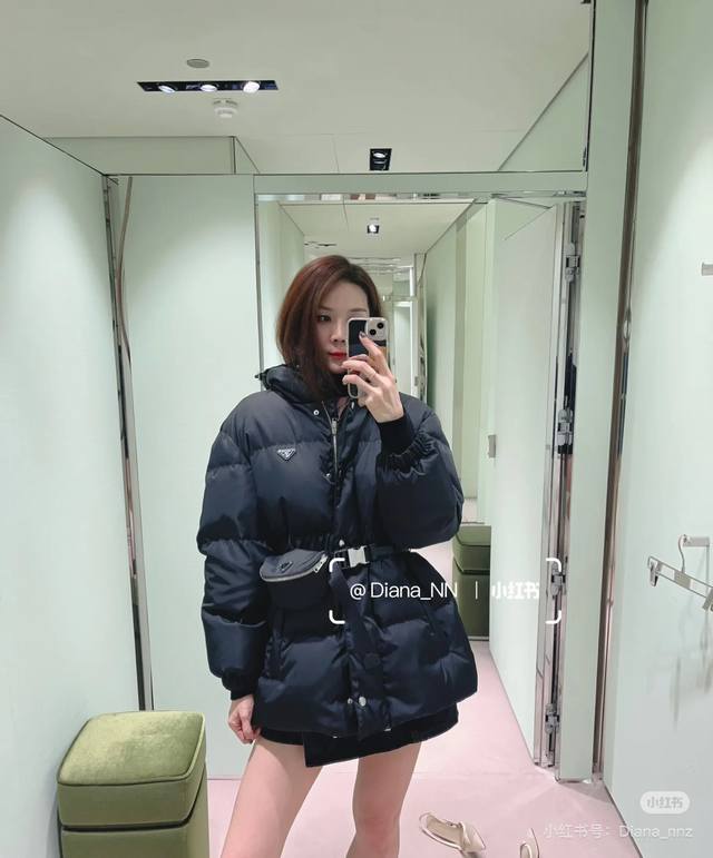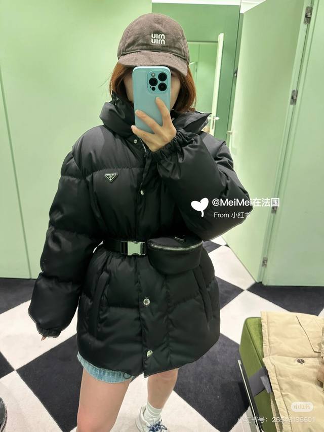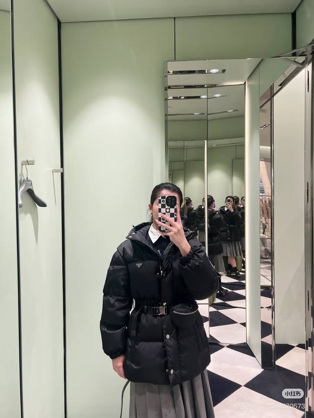prad*New p brand custom letter logo hardware accessories, silver metal buckle strap bag belt waist-cinching slimming thick puff coat! Black, size M: shoulder width 52, chest 102, waist 78 (elastic), sleeve length 51, coat length 71 DDD