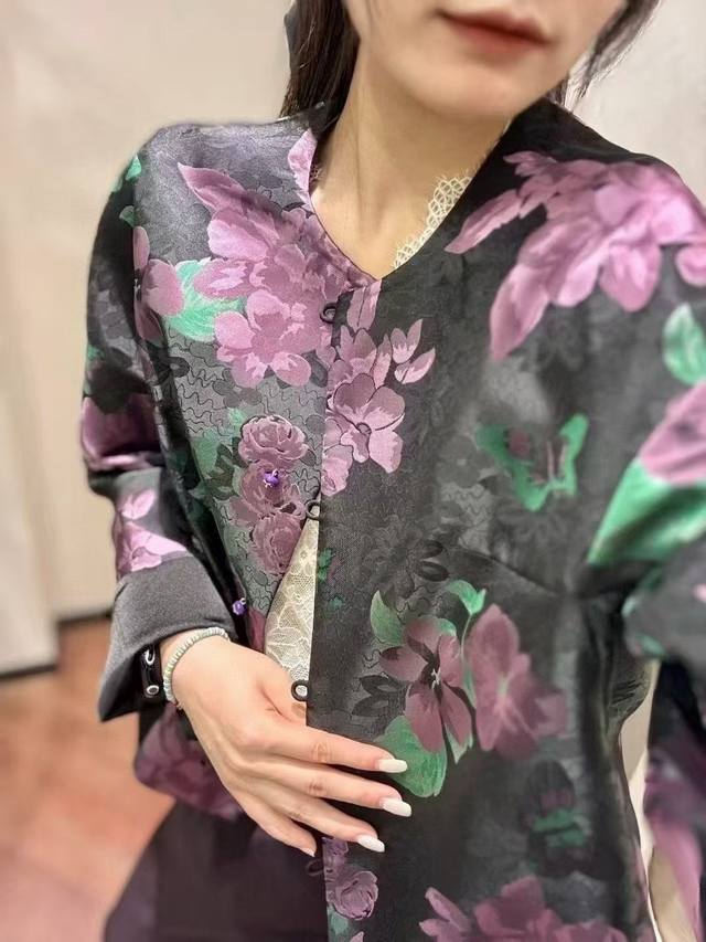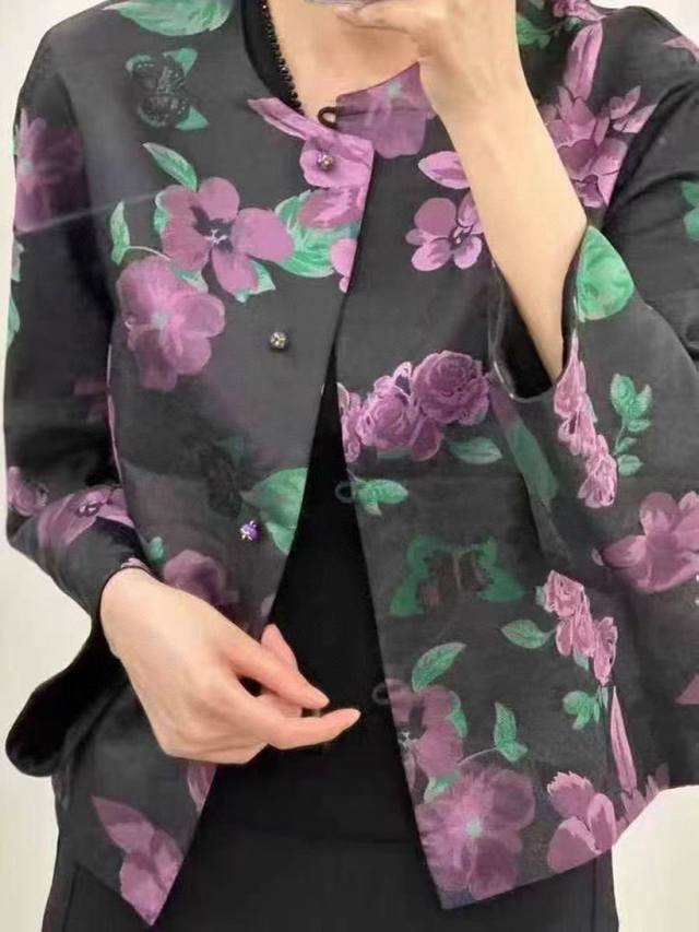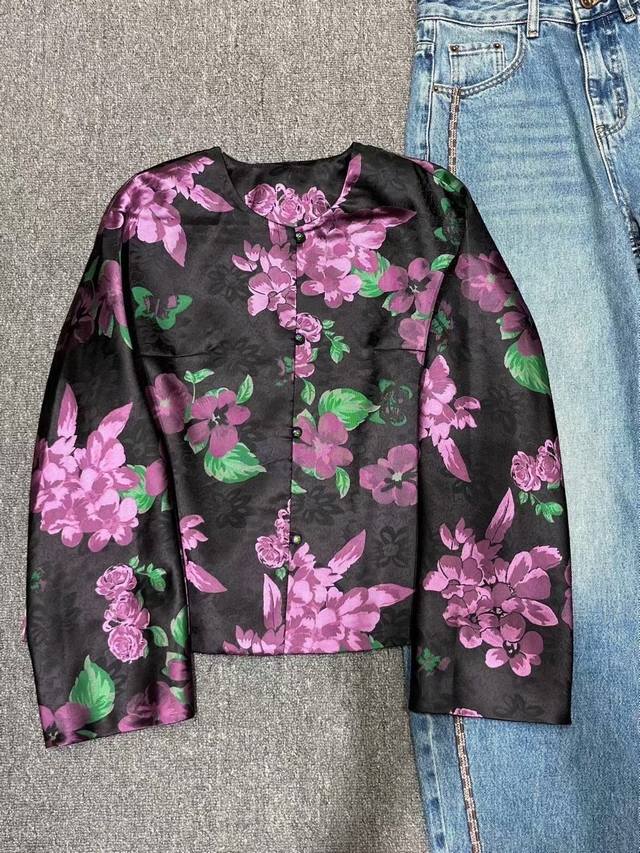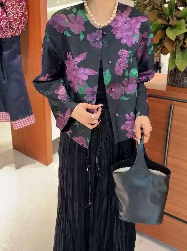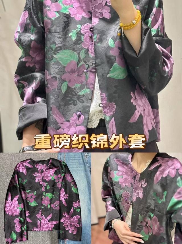 Price adjustment heavy brocade jacket! European station 2025 autumn temperament versatile fashion purple flower print exquisite jacket, new Chinese style old print purple jacquard long-sleeved cardigan jacket female 2025 autumn round neck casual loose top Smlxl