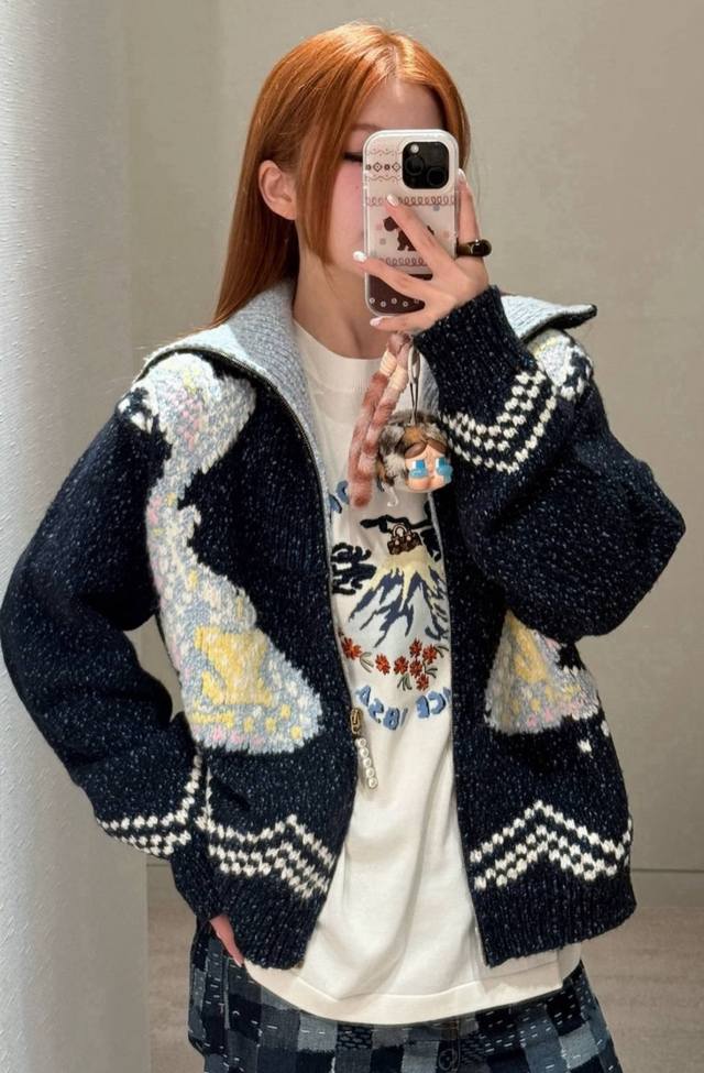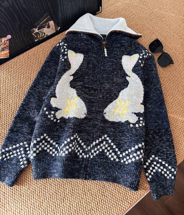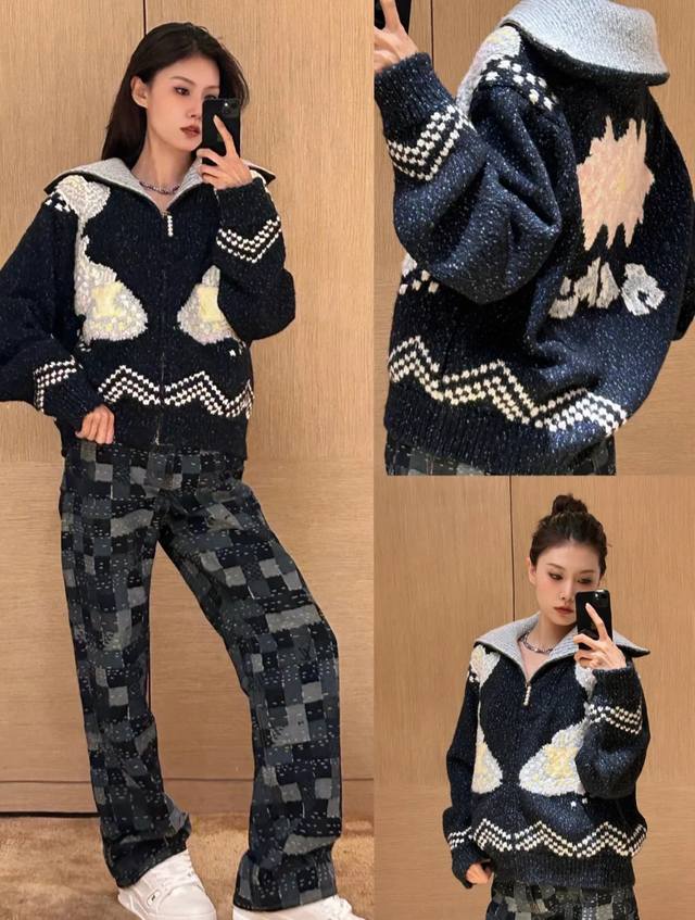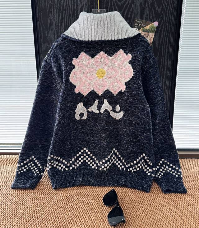 Chane*25B, a new fall/winter knitted round-neck cardigan with colorful stripes a