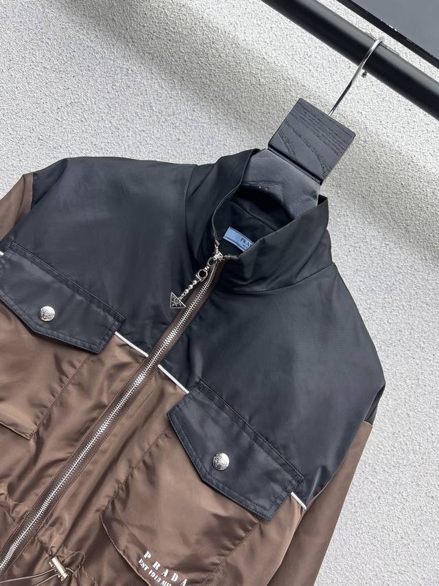 p's contrasting color waisted nylon jacket is a fashionable must-have item. It is a high-quality product that can support any occasion. It has a high-end feel and is custom-made. The details are well-made and the quality is high-quality. Sizes Sml