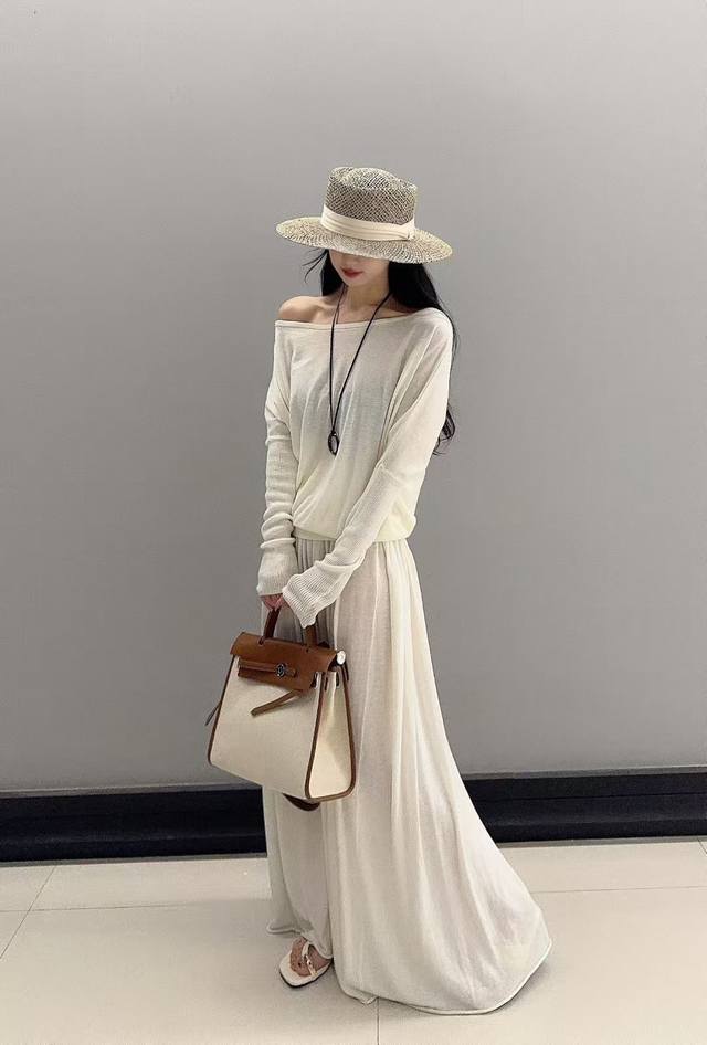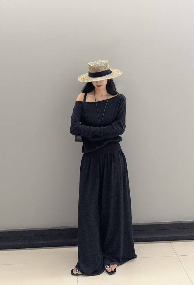 / Pure desire sexy one-shoulder long-sleeved top new style slim fit pleated skirt