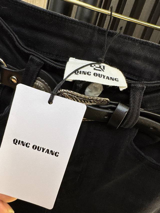 Qoy 2025 Autumn/Winter New Arrival: Qoy Heavy-Duty Belt Skinny Jeans - A Hot Selling Item! Made from premium fabric, soft, comfortable, and not constricting. The heavy-duty belt design showcases individuality and style. The slim-fit skinny cut perfectly accentuates leg lines, making it a must-have for a flattering and elongating silhouette! A versatile style that easily pairs with various tops, perfect for everyday wear or dates/party occasions, exuding confidence and style. (Image colors: Smlxl