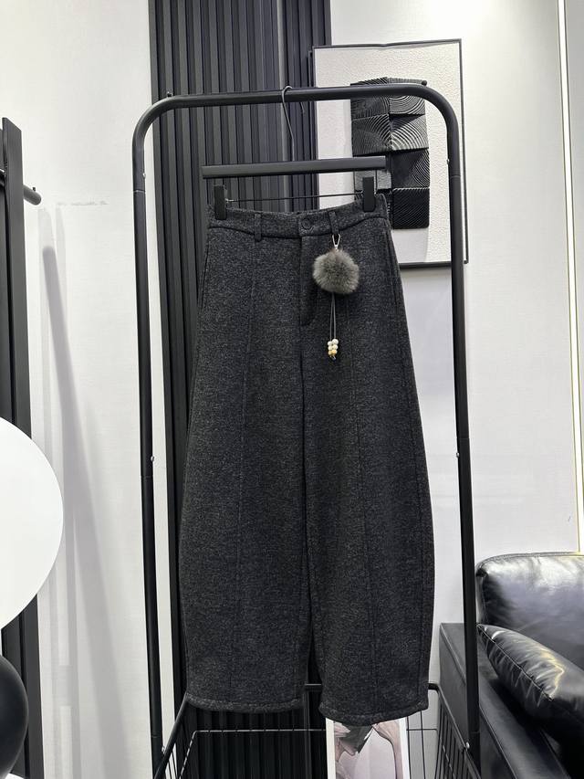 Qoy - New Korean Style Lazy Fleece-Lined Cropped Banana Pants, Composite Wool Fabric, Hip-Covering and Slimming Fit, Excellent Quality, Must-Have, Dark Gray/Black, Smlxl DDD