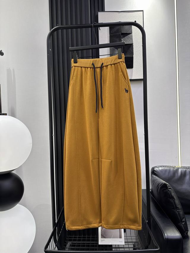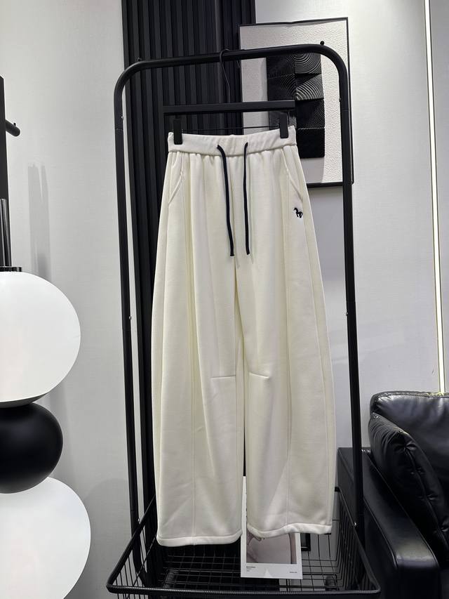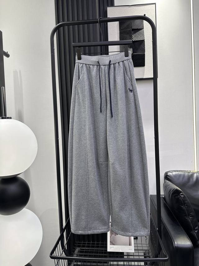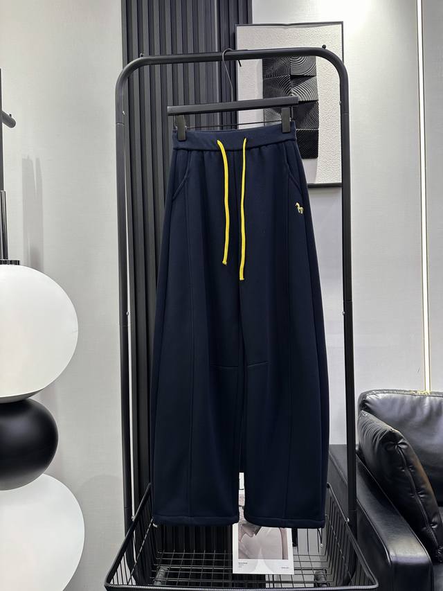 Qoy-New Color Block Drawstring Fleece-Lined Banana Pants - Two-Way Wear at the Leg Opening, Pony Embroidery Design on the Left Front Pocket - Stylish Fit, Flattering for All Leg Shapes, Everyone Looks Good in Them! Five Colors: Smlxl DDD