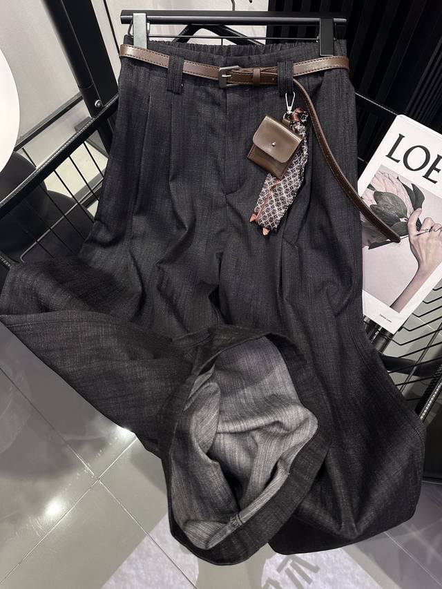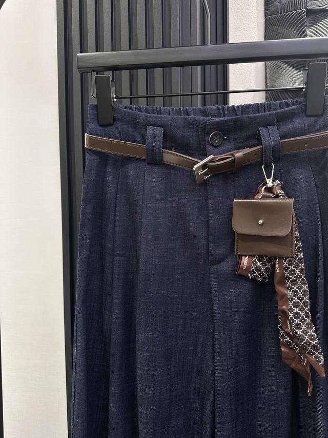 Qoy-New old money style high waist wide leg pants waist bag belt embellishment Tencel denim fabric upper body crisp style super slim close eyes into three colors Smlxl