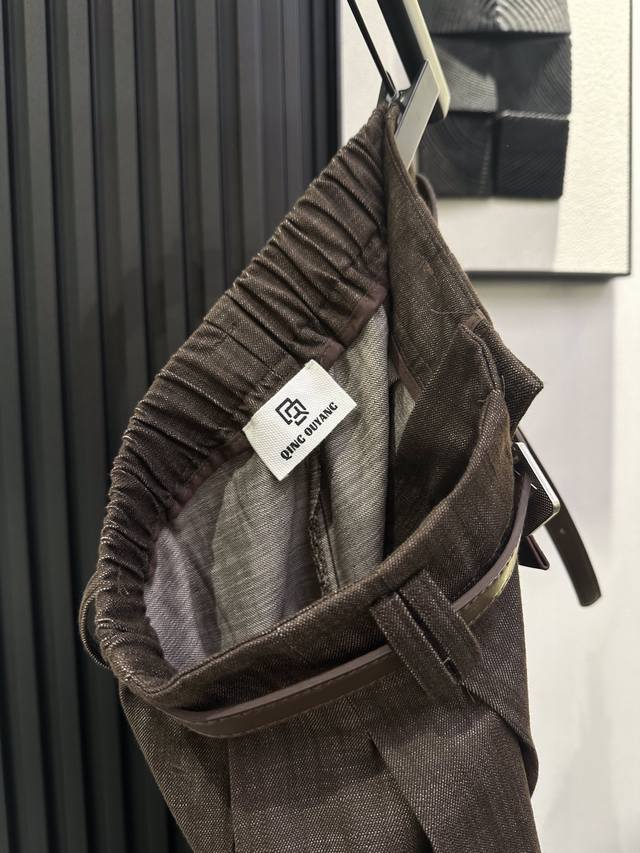 Qoy-New old money style high waist wide leg pants waist bag belt embellishment T