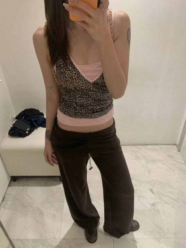 RA 2025 Summer New V-neck Pleated Print Halter Vest Leopard Print Sml DDD
