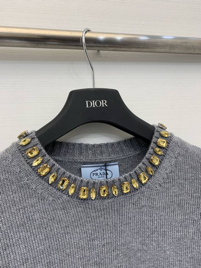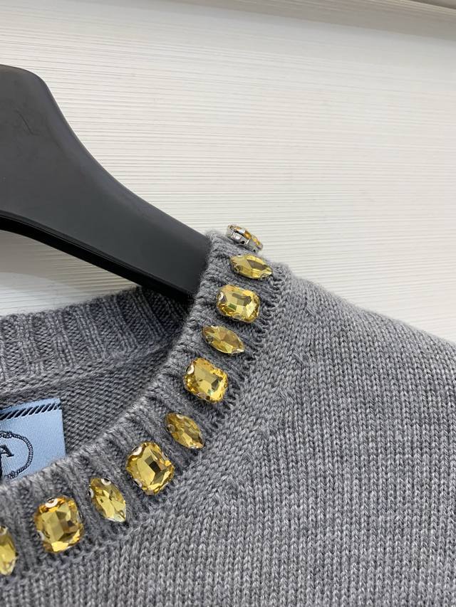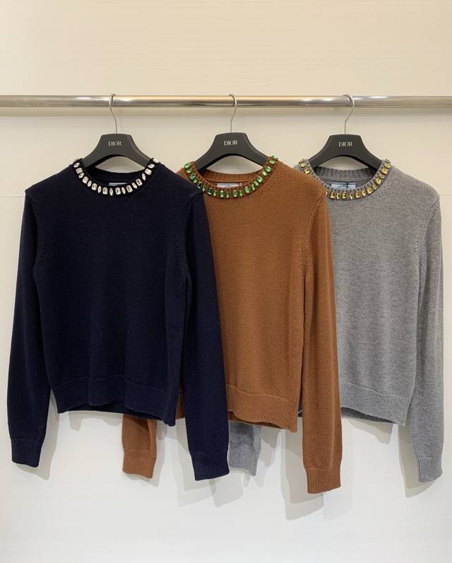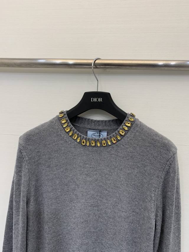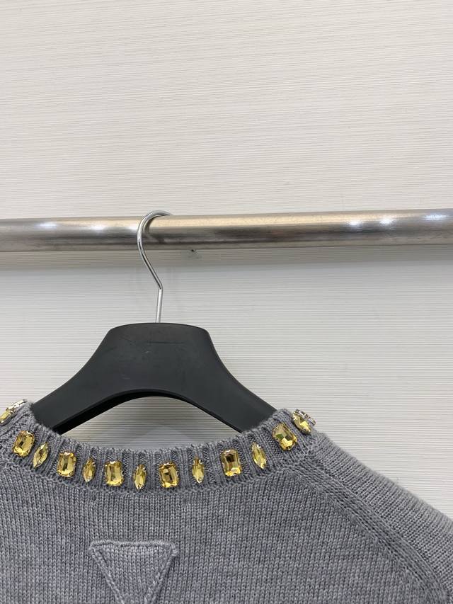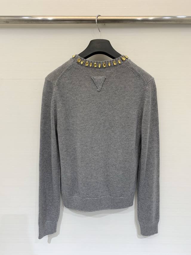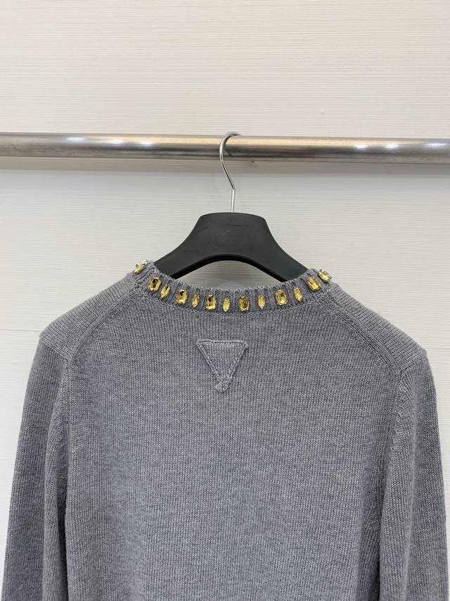 Rada 26 Early Spring New Rhinestone Round Neck Knitted Long Sleeve with Triangle Logo on the Back - High-End Style Available Now! Code: DDD