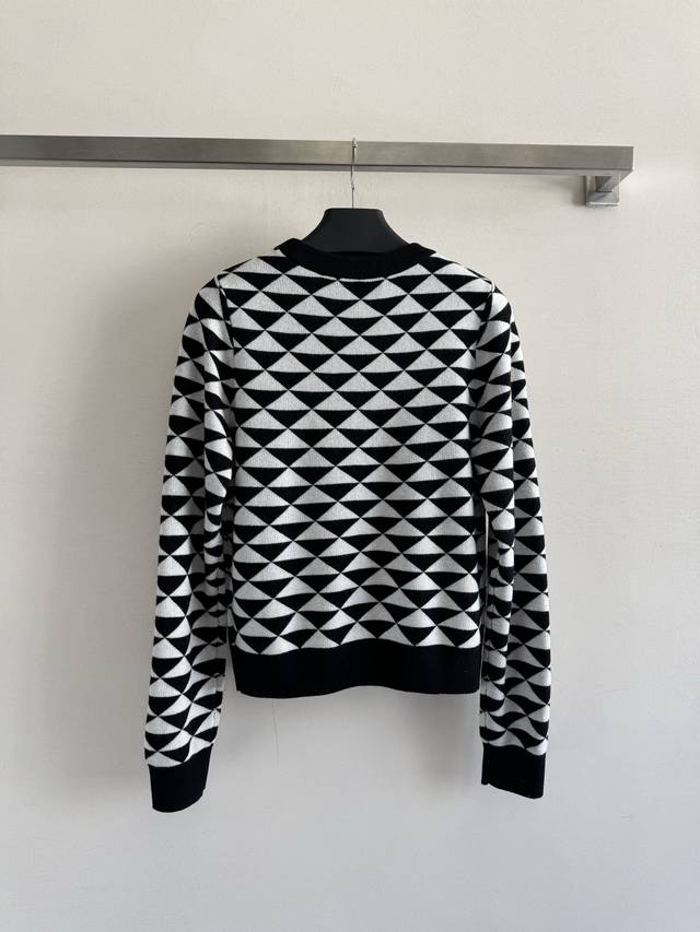 Rada Autumn/Winter New Triangle Print Logo Crew Neck Knit Long Sleeve with Patterned Triangle Print, Slimming and Stylish, Size
