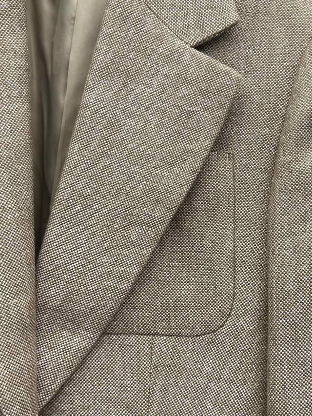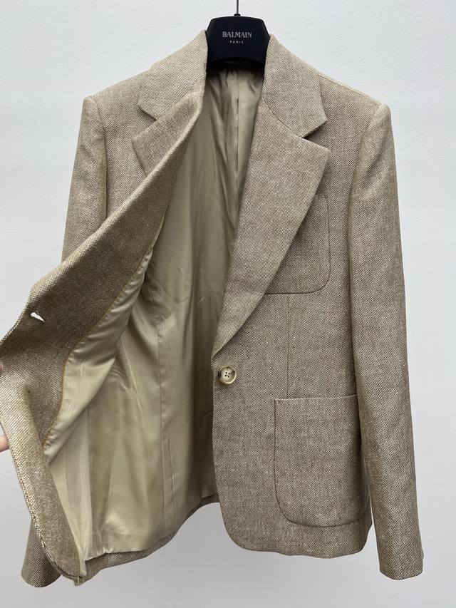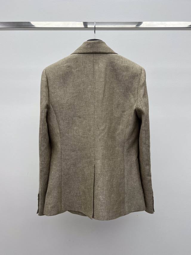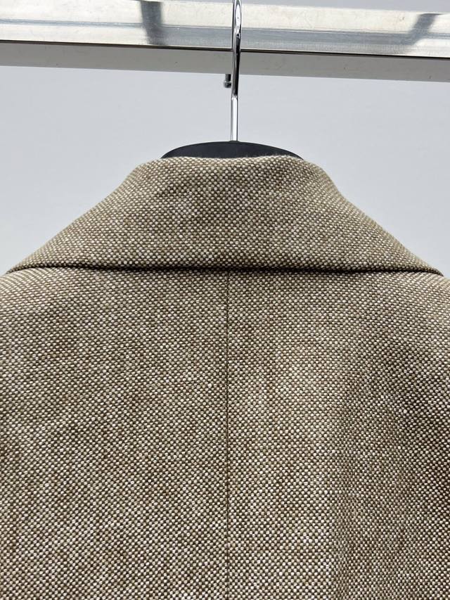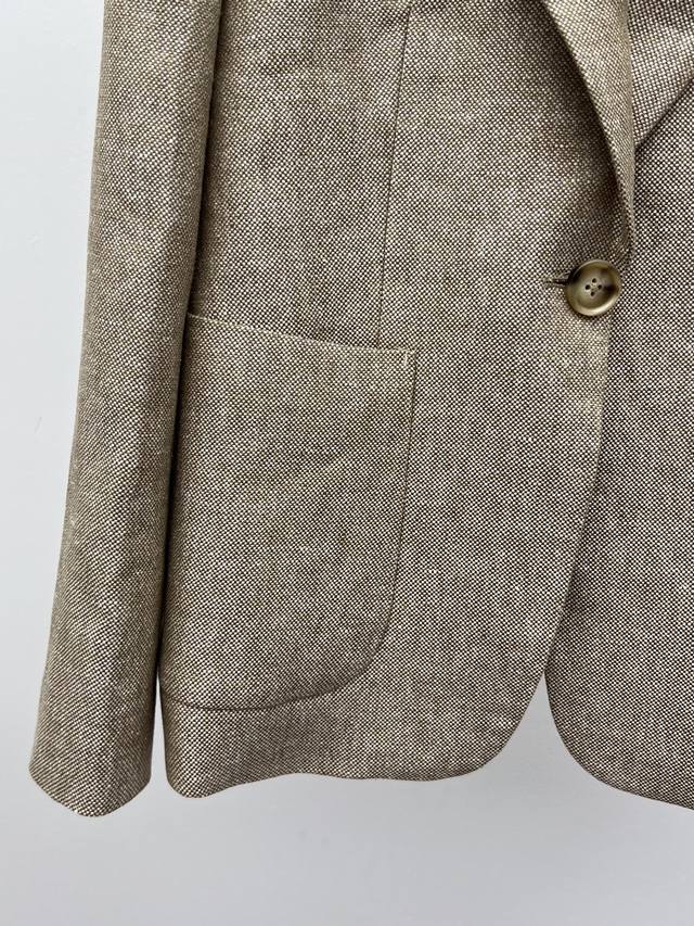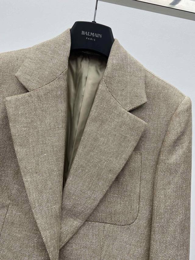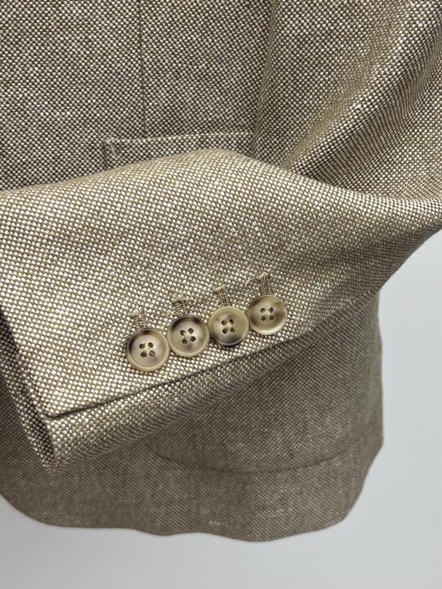 This suit is made from linen tweed fabric