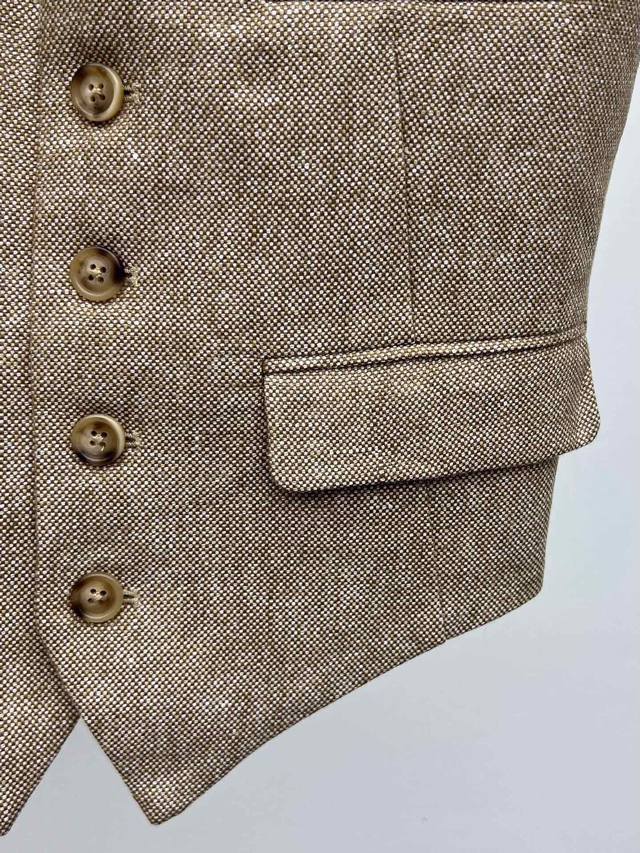 It can be paired with trousers or skirts for a relaxed, vintage look