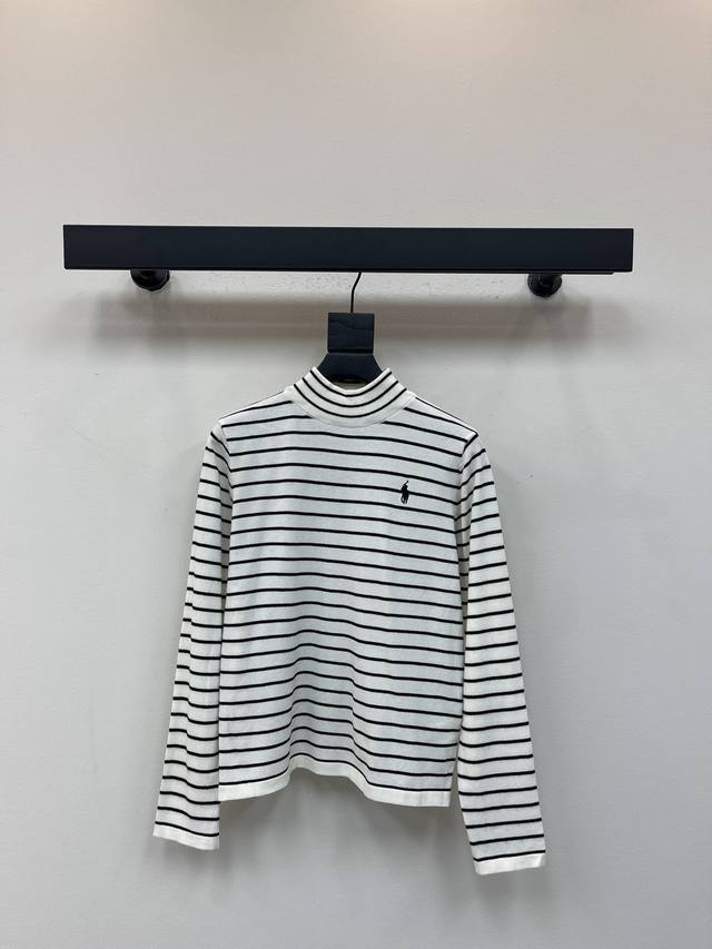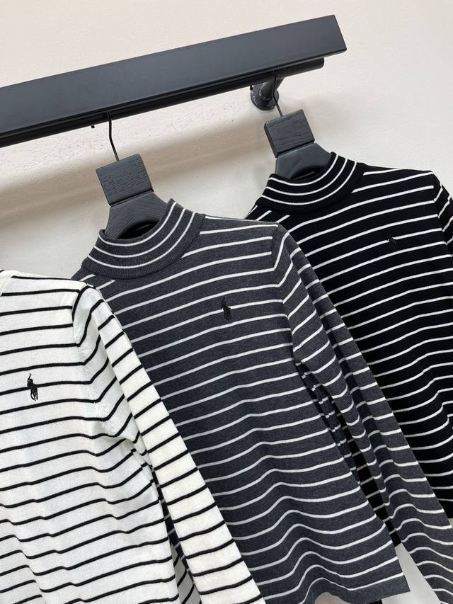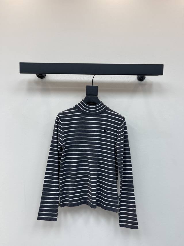 Ralph Laure* Polo 25 Early Fall new model, a high-neck striped knit long-sleeve top! Custom-made wool knit, soft and comfortable, the high-neck knit top is windproof and warm. The pony logo on the chest showcases the brand's signature style. The all-over stripes and contrasting colors add a rich visual effect and artistic flair. The vertical ribbed stretch fabric fits the body perfectly, creating a simple, sophisticated, and fashionable look! Sml Aa.