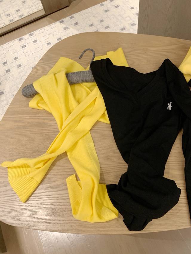 / Ralph Rl pony embroidered V-neck long-sleeved top with yellow shawl black and w