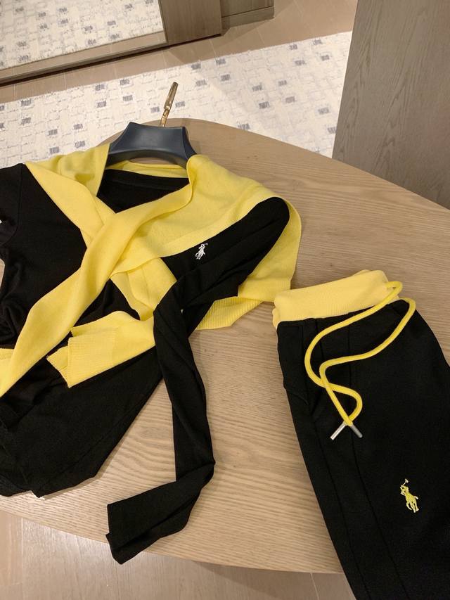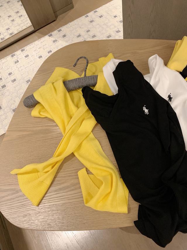 Ralph Rl pony embroidered V-neck long-sleeved top with yellow shawl black and w