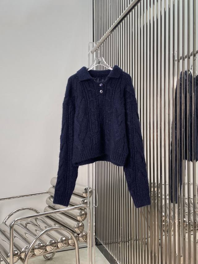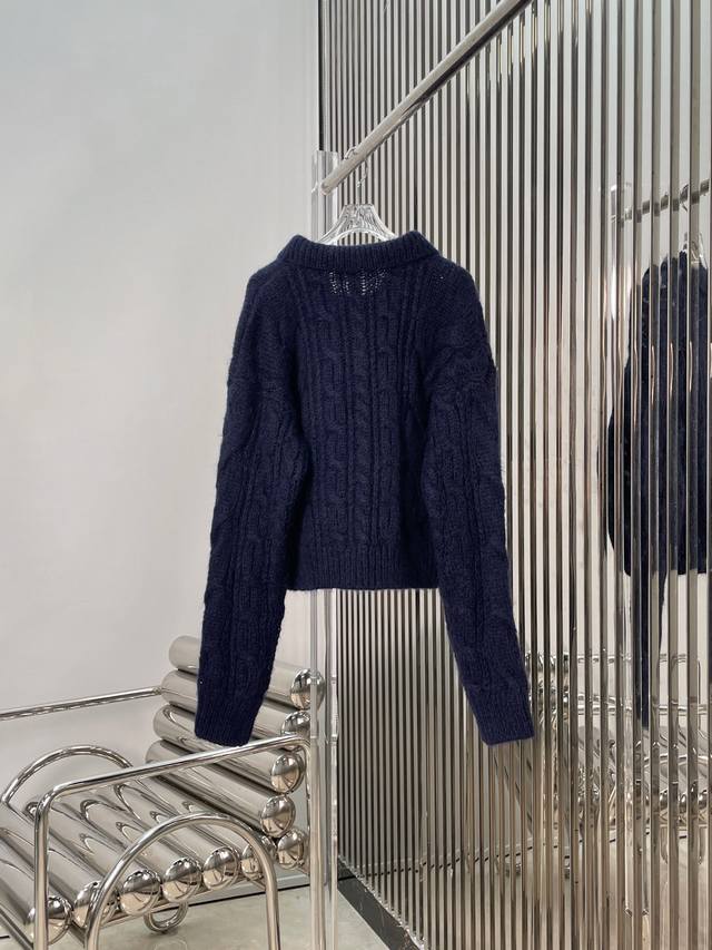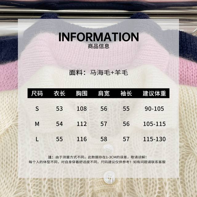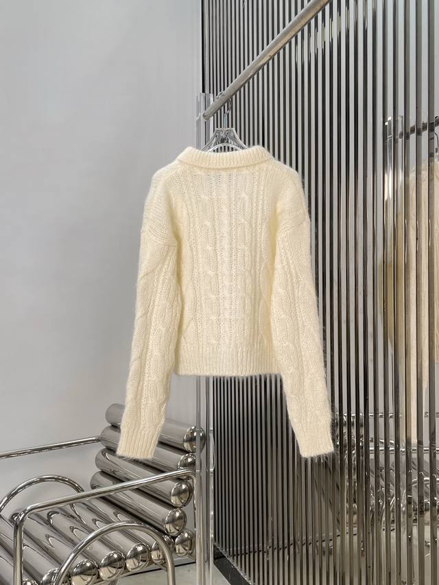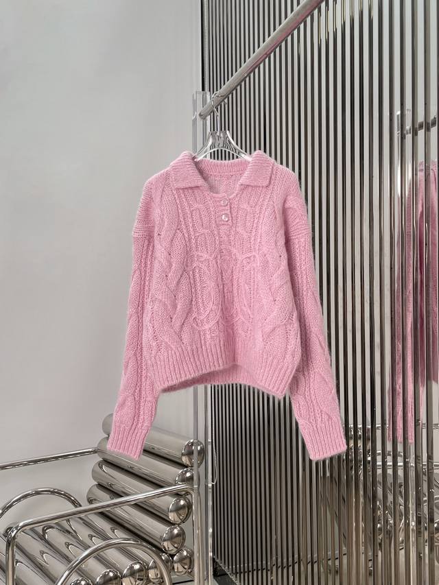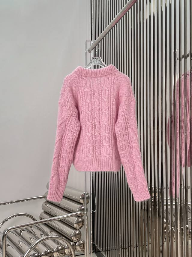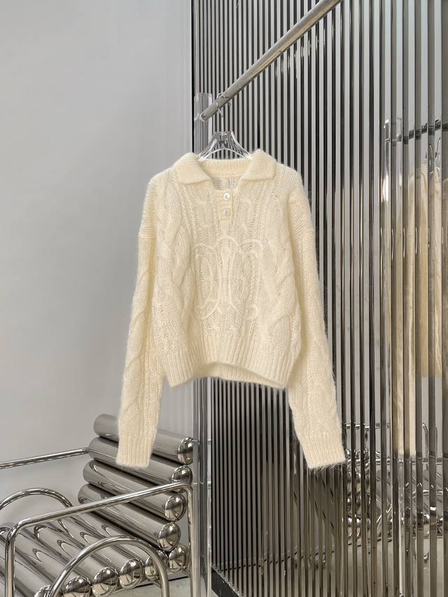Real photos! Latest Ce 25New high-proportion mohair Arc de Triomphe logo collar sweater. Colors: Pink, White, Blue. Sizes: S, M, L. DDD