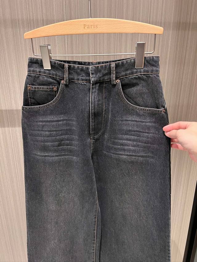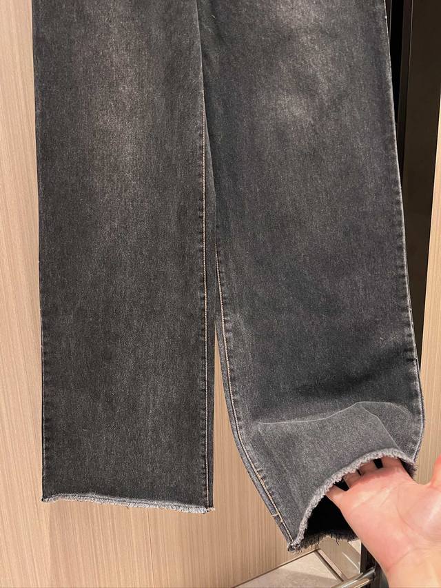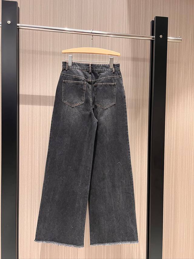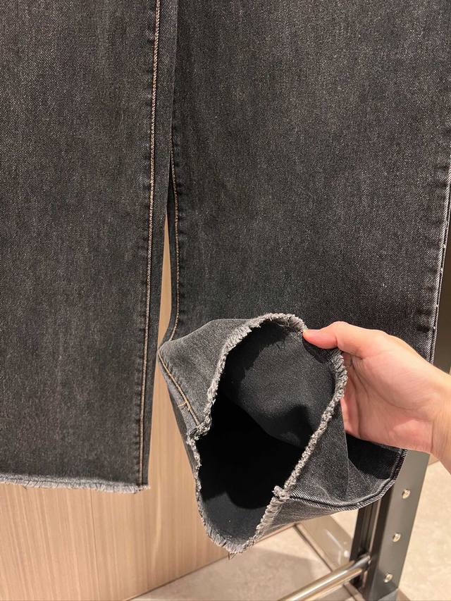 Recommended New Retro Washed Frayed Wide-Leg Jeans, Washed Charcoal Gray, Sweet, Cool, Casual, Youthful, Versatile, Slimming, Sizes Sml DDD