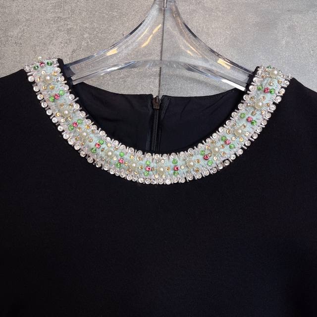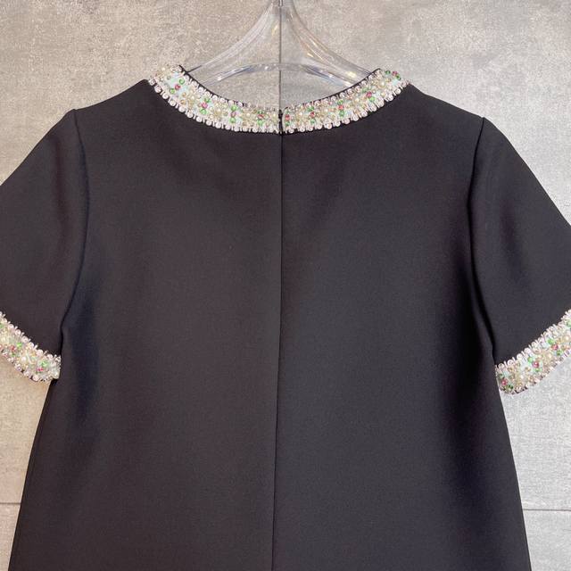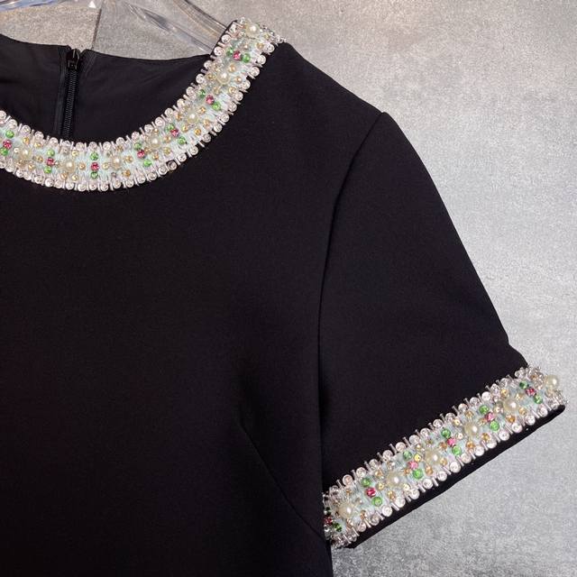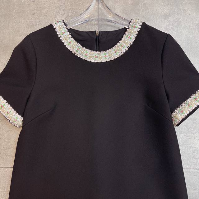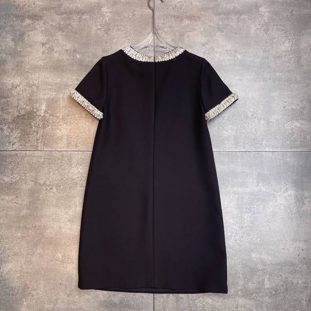Hot-selling Valent0ڢ show 2025 early autumn haute couture dress series new style, pure hand-made heavy beaded embroidery pearl rhinestone original version perfectly modifies the waist curve, making the workplace goddess temperament and fashionable coexist. The real thing looks better than the picture. Short-sleeved dress