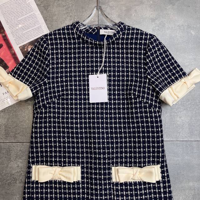 The same style as the celebrity, Valent0ڢ show, 2025 early autumn counter new products, daily essential items, skirt with bow, love ~ Beautiful princess plaid dress, V's dress will never go out of style, three-dimensional tailoring can well modify the figure short-sleeved dress